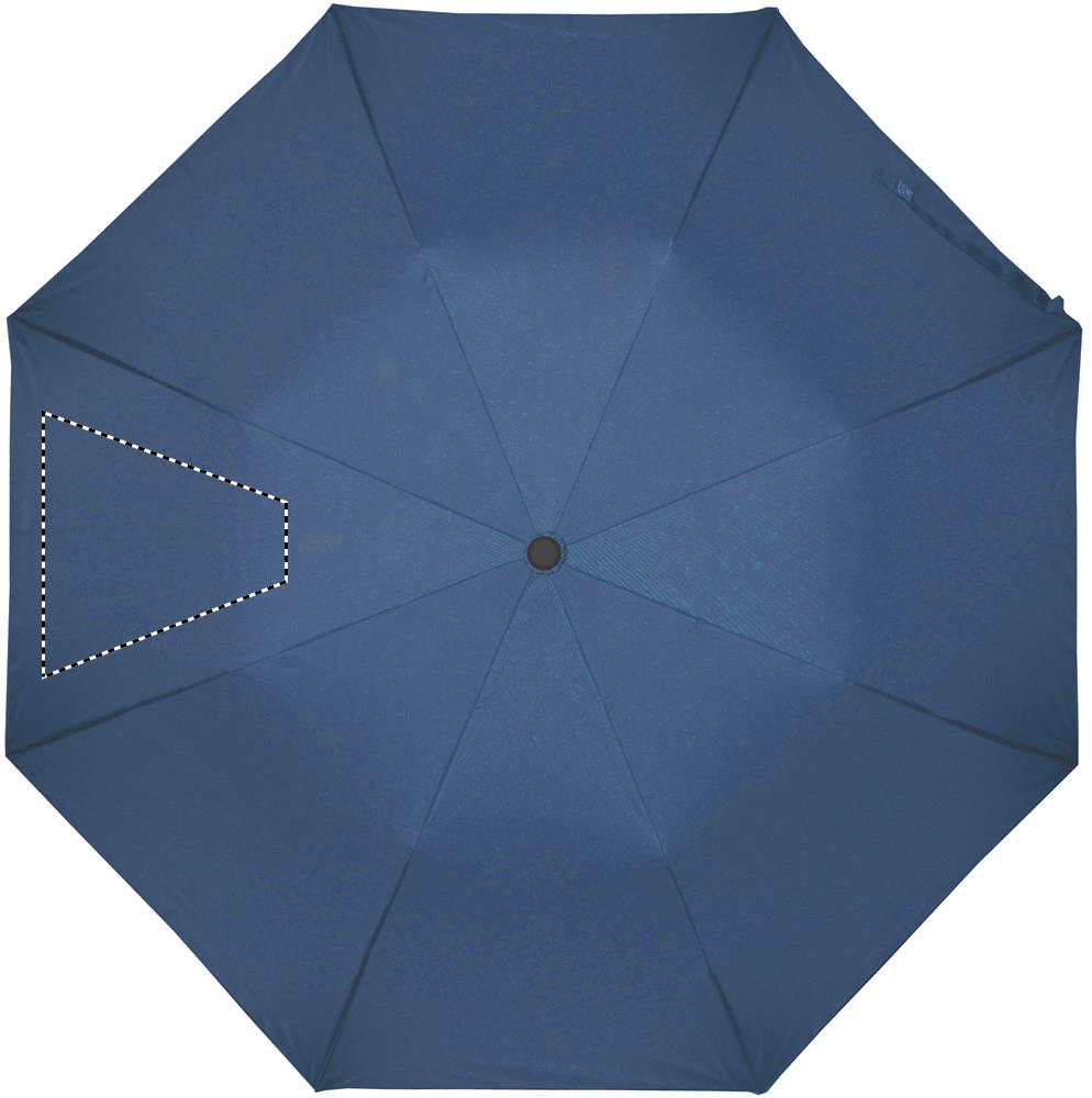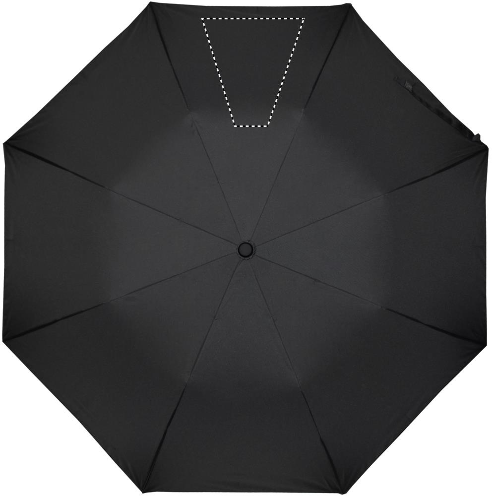 21'' Regenschirm aus 190T Seide. 2-fach faltbar. Stock, Schienen und Spitze aus verzinktem Stahl. Schwarz gummierter ABS Griff. Mit passender Schirmhülle. Automatische Öffnung, manuelle Schließung.
