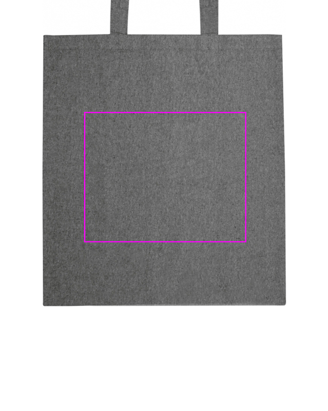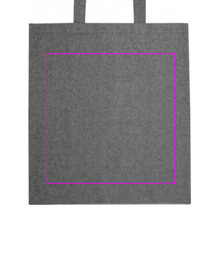 Recycelte Öko Tex Standard 100 Baumwolltasche mit langen Henkeln (140g/m²). Ihr Logo wird auf eine Seite der Tasche gedruckt.