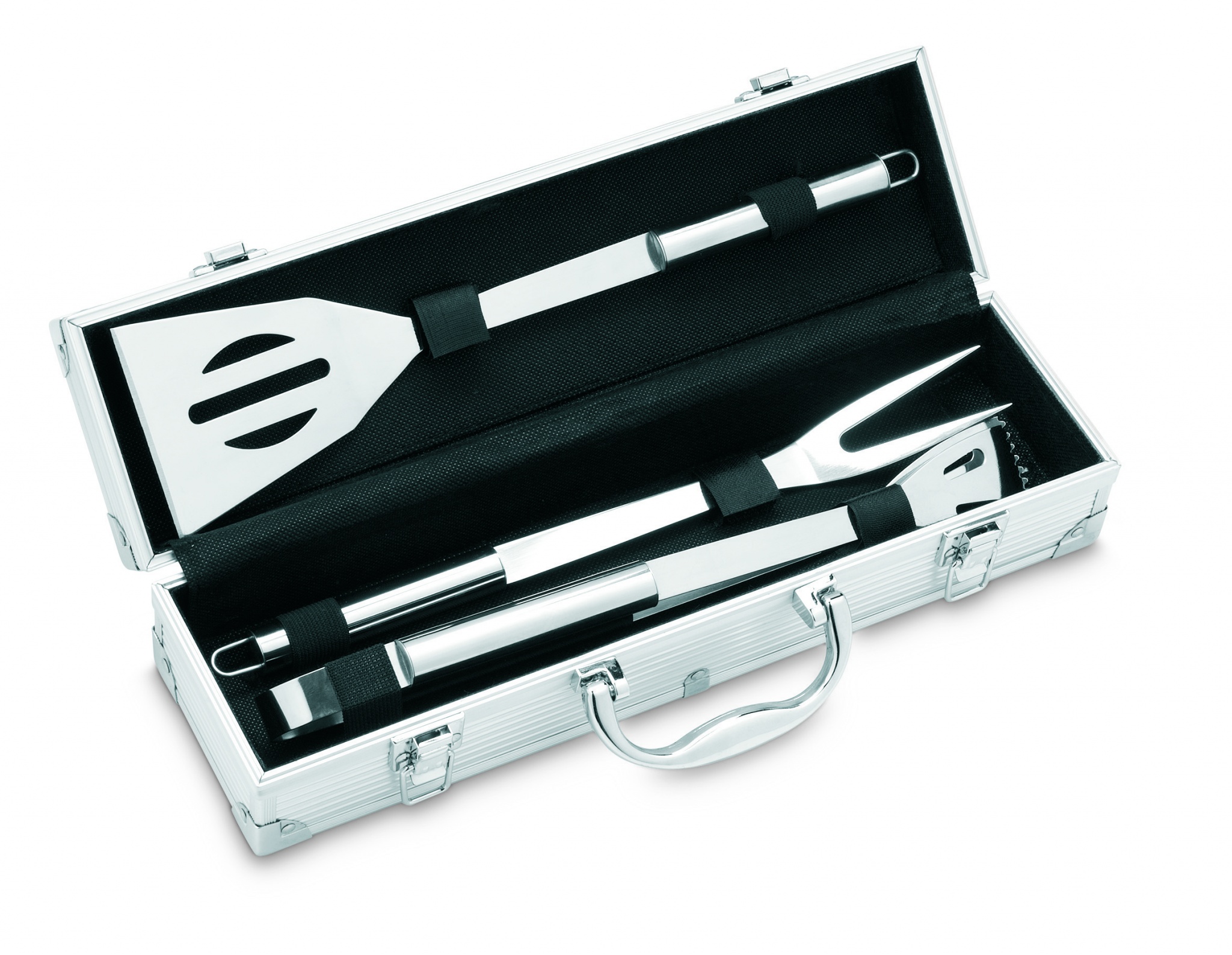 Aluminiumkoffer mit 3 BBQ Accessoires aus rostfreiem Edelstahl.