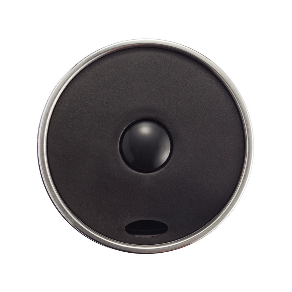 350ml Becher aus Edelstahl, innen Kunststoff, mit Push-Knopf zum dichten Verschließen des Bechers, geeignet zur einhändigen Bedienung. Nur Handwäsche. Geschütztes Design®