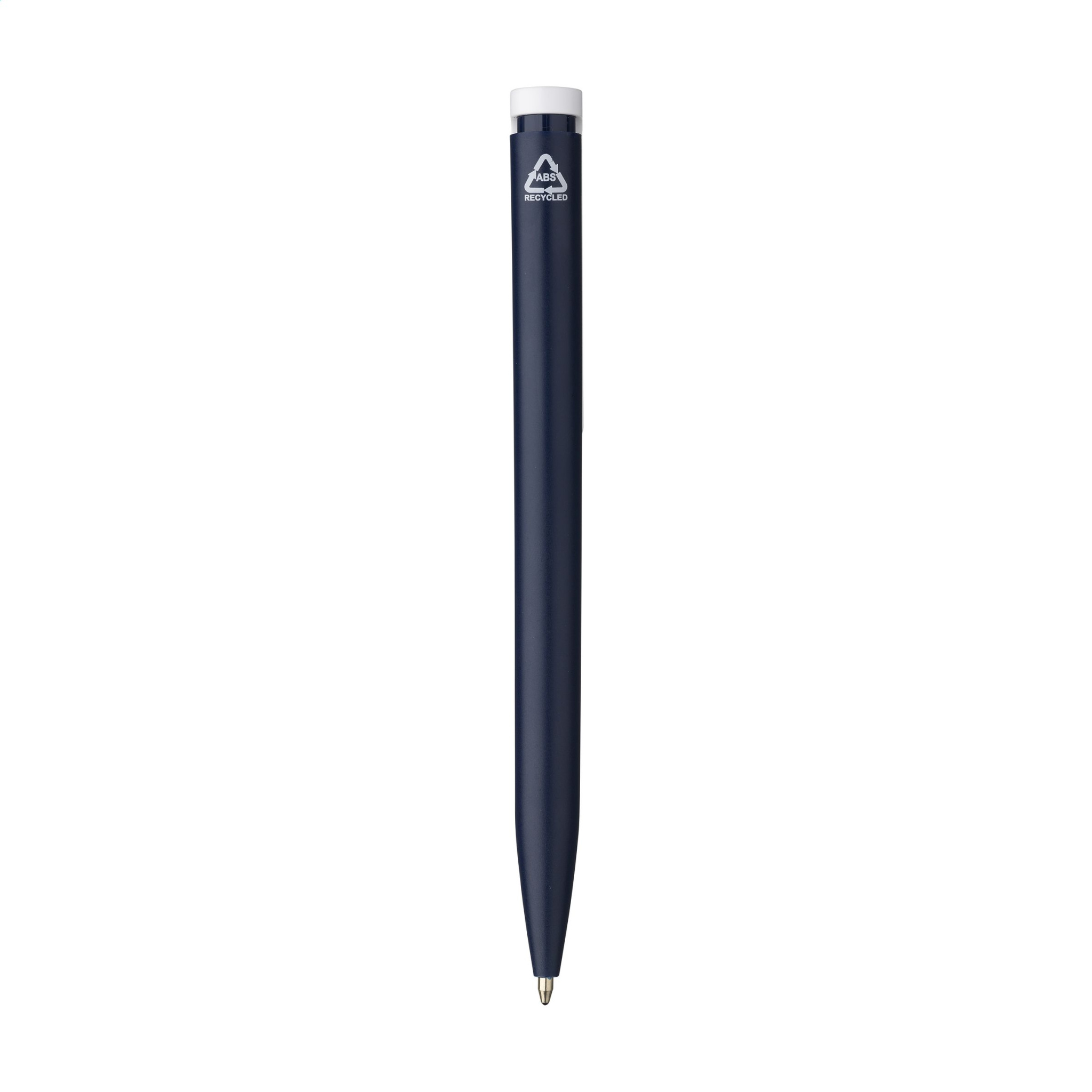 Kugelschreiber mit blauschreibendem Stift aus recyceltem ABS. Der Clip/Druckknopf dieses Stifts hat einen auffälligen Farbakzent und bietet Platz für einen großzügigen, digitalen Vollfarbdruck. GRS-zertifiziert. Gesamtanteil recycelten Materials: 85 %.