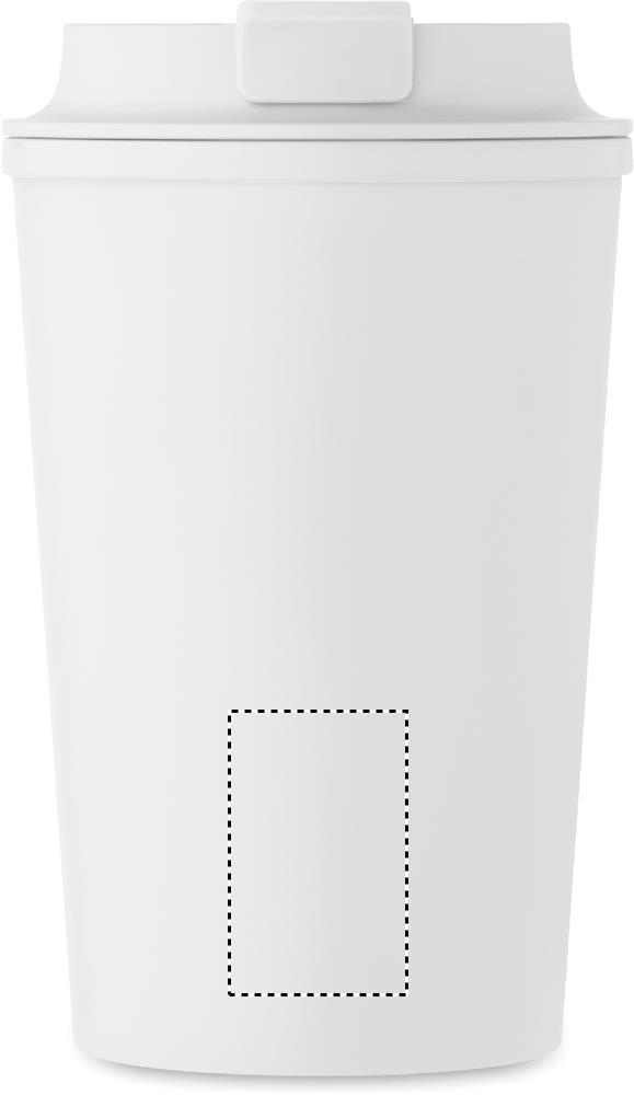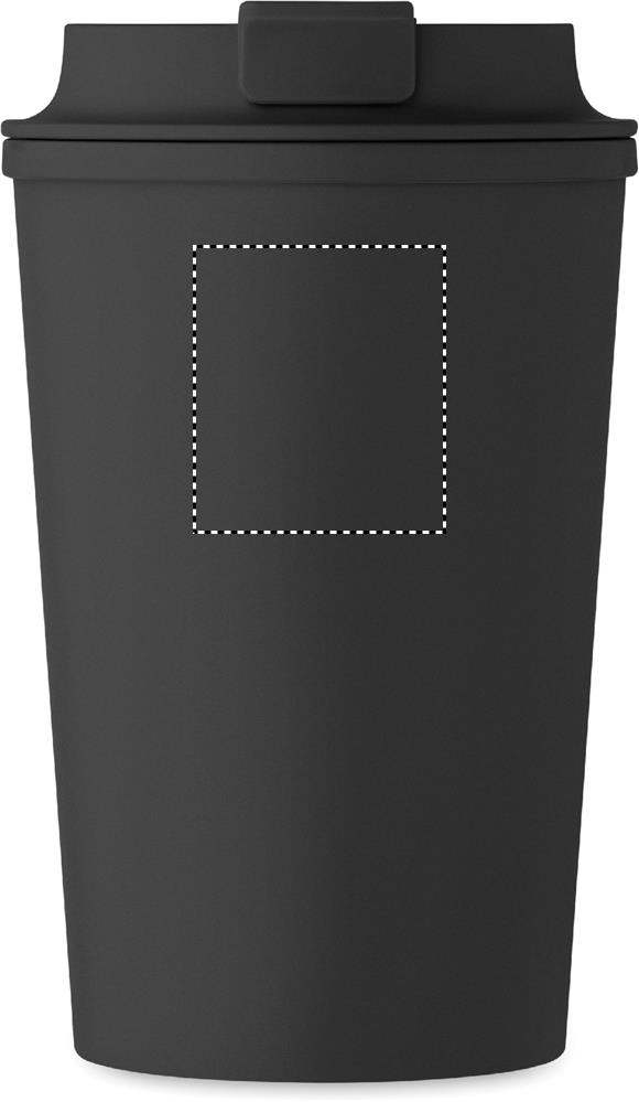 Doppelwandiger Becher aus 100% PLA-Mais mit Trinkdeckel aus recyceltem PP. Innenauskleidung aus TPR. Füllmenge: 350 ml.