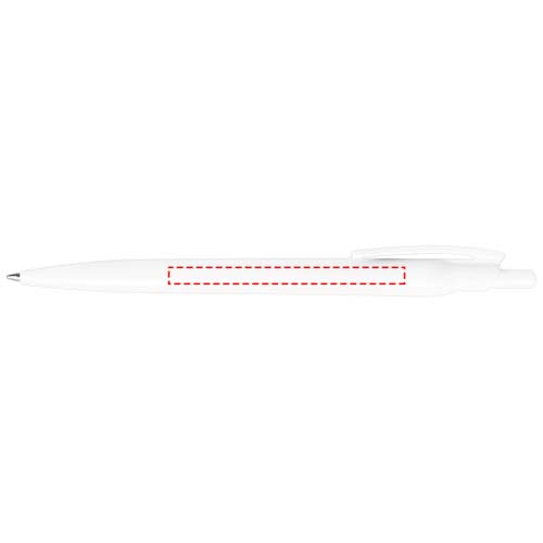 Kugelschreiber mit Klickmechanismus aus zertifiziertem, recyceltem PET, das von gebrauchten Wasser- und Sodaflaschen stammt (mit Ausnahme der Mine und der Feder). Eine 500 ml Flasche wird zur Herstellung eines Kugelschreibers verwendet. Enthält eine europäische X20-Mine mit dezenter Tinte und einer Schreiblänge von etwa 2000 Metern. Auch mit einer schwarzen Tintenmine erhältlich (107722). Hergestellt in Italien.