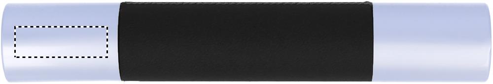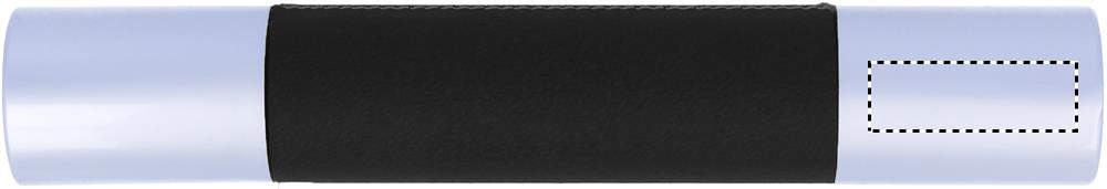 Metallkugelschreiber mit silber verchromten Enden und Lederapplikationen. Mit passender Aluminiumbox. Schwarze Tinte.