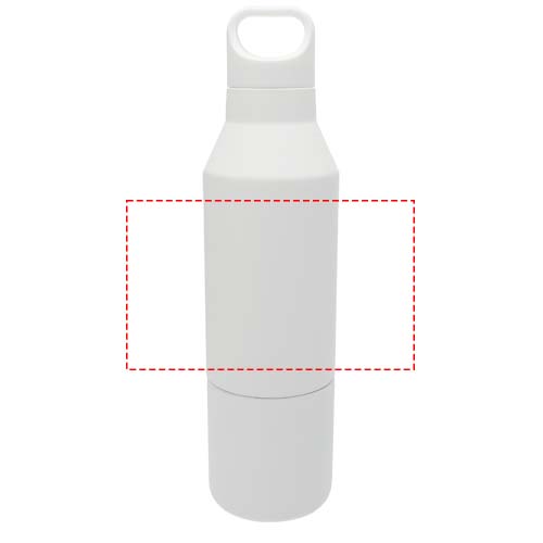 RCS-zertifizierte doppelwandige Kupfer-Isolierflasche aus Edelstahl mit abnehmbarem Becher. Diese Mehrzweck-Flasche ist so konzipiert, dass sie in die Seitentasche eines Rucksacks passt, und verfügt über einen praktischen in den Deckel integrierten Tragegriff. Die Außenseite der Flasche ist mit einer langlebigen Pulverbeschichtung versehen. Hält Getränke 12 Stunden warm oder 24 Stunden kalt. Verpackt in einer Geschenkbox aus Recyclingkarton. Fassungsvermögen der Flasche: 600 ml. Fassungsvermögen Tasse: 300 ml.