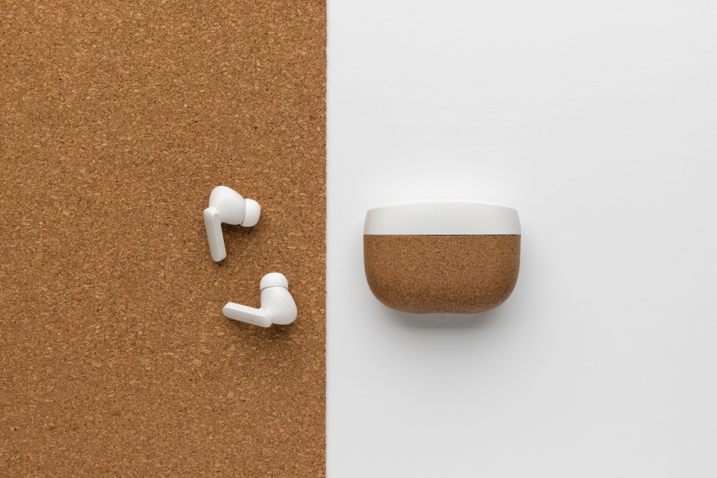 Produkte Schreibwaren Oregon TWS-Kopfhörer aus RCS recyceltem Kunststoff und Kork