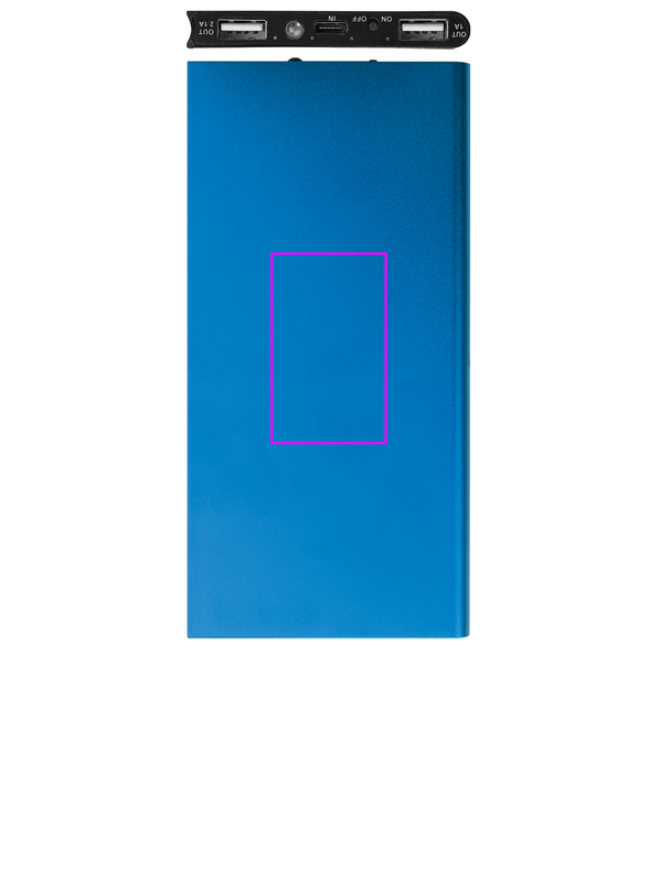 Powerbank aus Aluminium mit Ladezustandsanzeige und einer Kapazität von 8.000 mAH. Inklusive Micro-USB-Ladekabel. Ihre Werbung gravieren wir auf die Powerbank.
