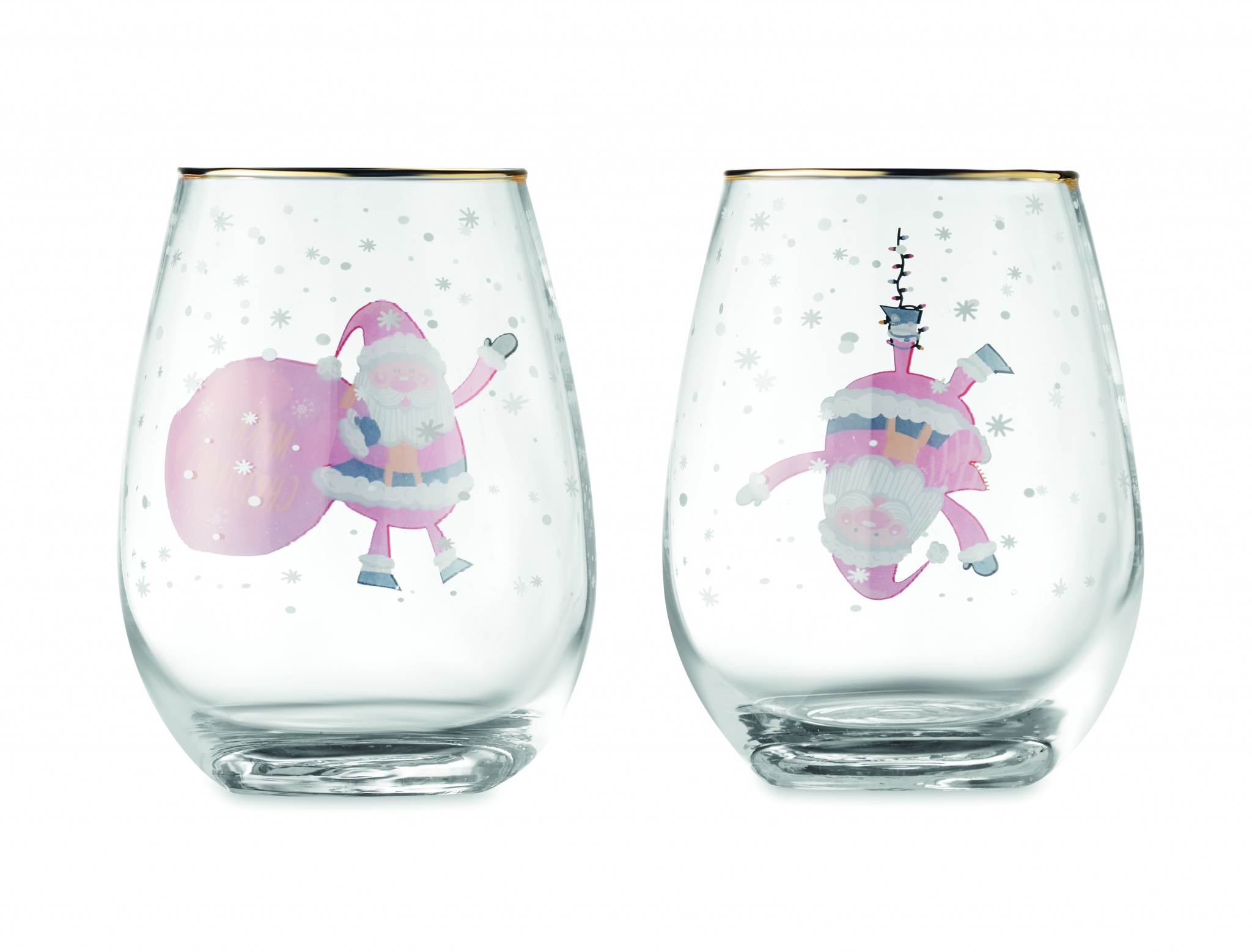 Set mit 2 Gläsern mit weihnachtlichem Dekor und Goldrand. Füllmenge: 330 ml. Lieferung in einer Geschenkbox.