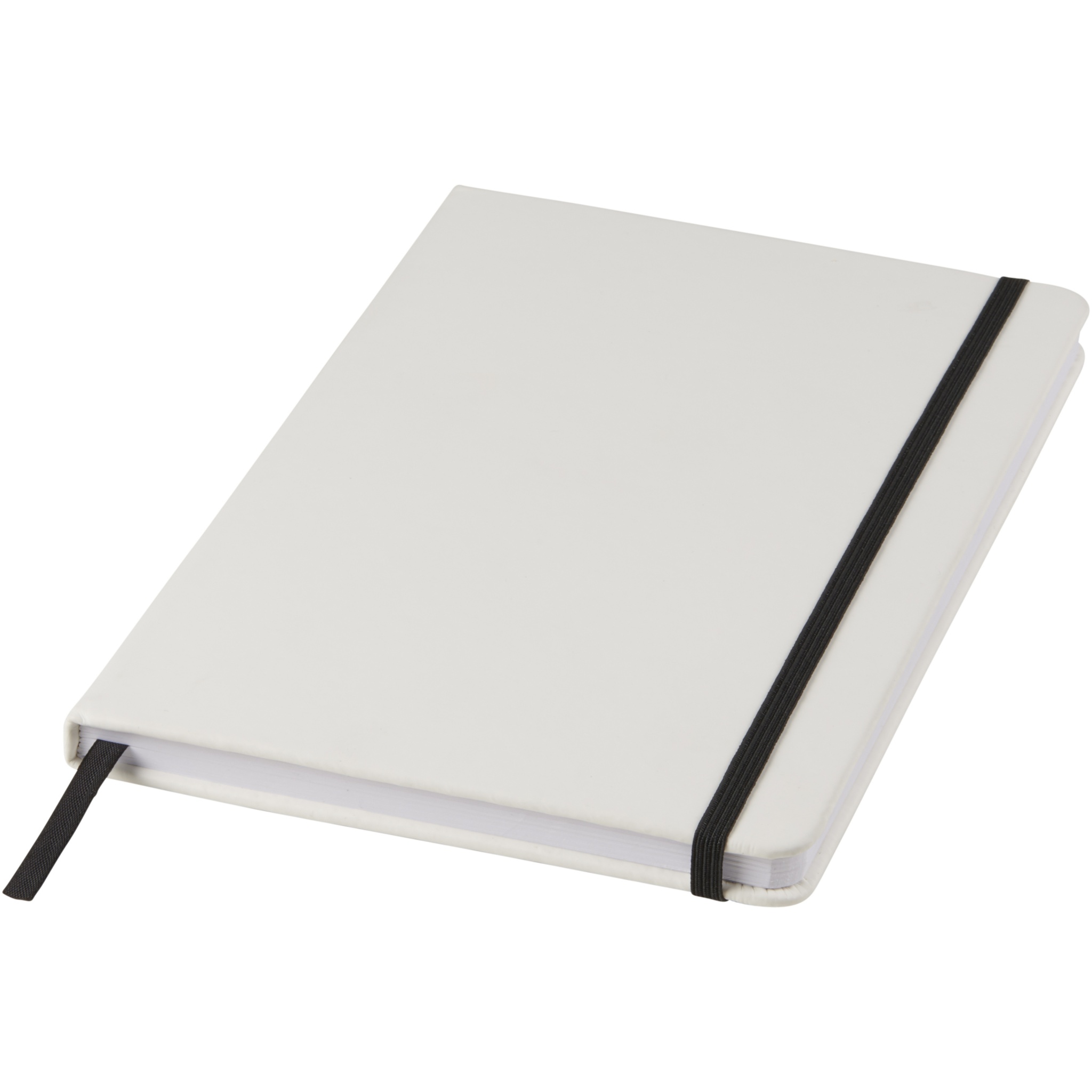 Spectrum weißes A5 Notizbuch mit farbigem Gummiband, Weiß / Tiefschwarz