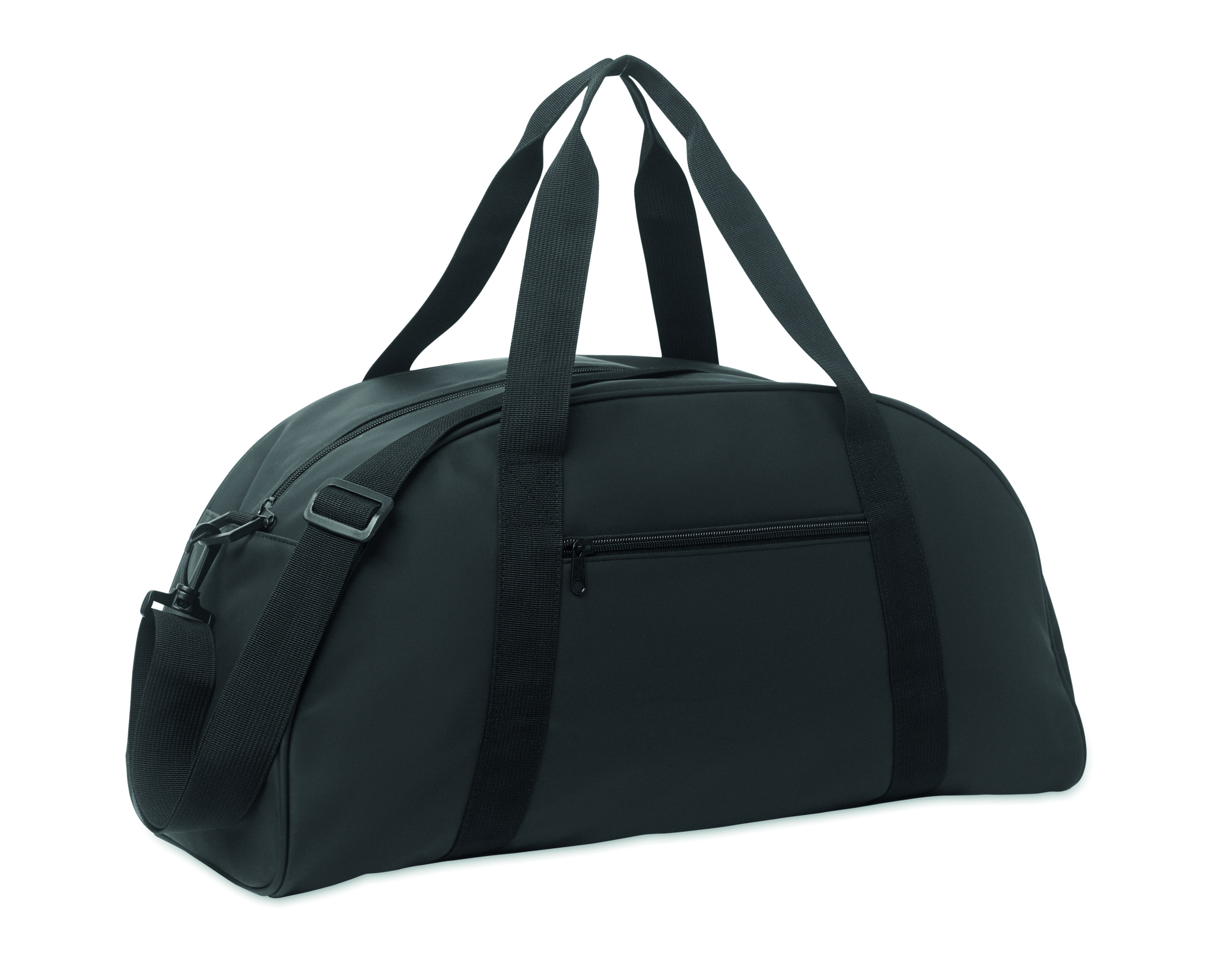 Sport- oder Reisetasche aus weichem PU mit schaumstoffverstärktem Boden. Hauptfach, Fronttasche und Innentasche mit Reißverschluss. Futter aus 210D RPET-Polyester. 2 Griffe und verstellbarer, abnehmbarer Schultergurt.