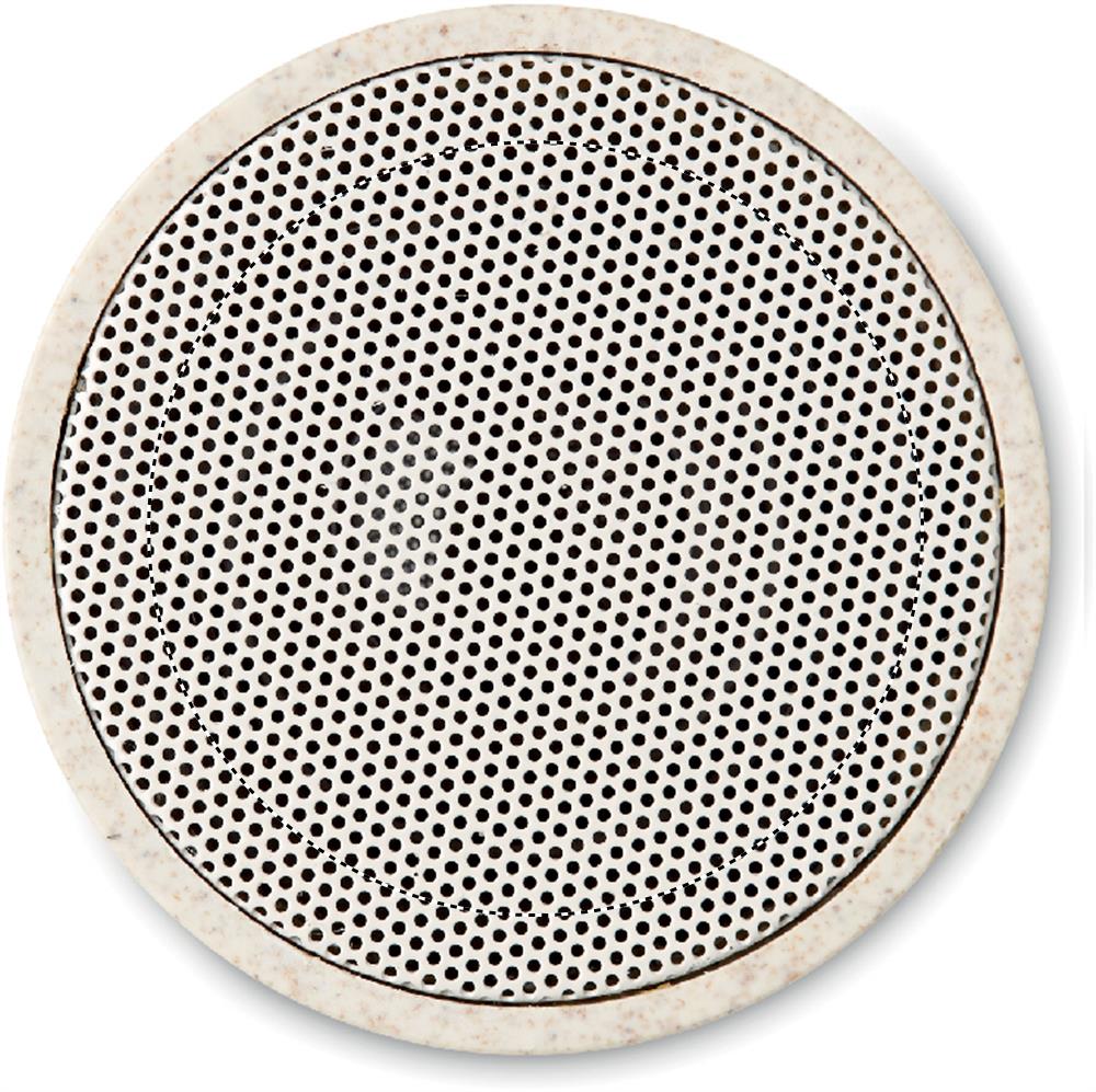 5.0 wireless-Lautsprecher aus Weizenstroh (35%) und ABS (65%). LED-Lichtanzeige. Inkl. wieder aufladbare Lithium 300 mAh Batterie. Spielzeit ca. 2h. Ausgangsleistung: 3W, 3 Ohm und 5V.
