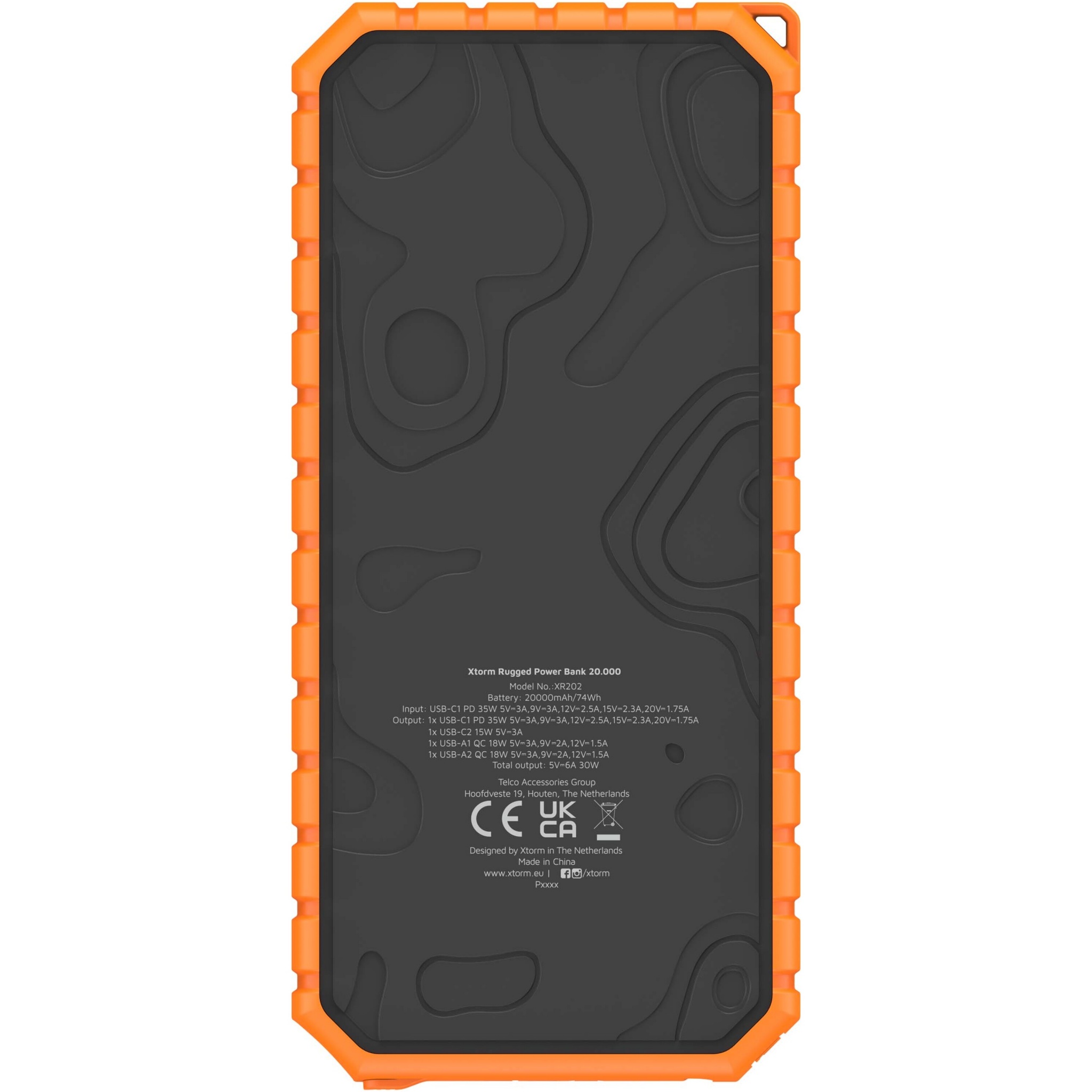 Xtorm XR202 Xtreme 35 W 20.000 mAh QC3.0 wasserdichte, robuste Powerbank mit Taschenlampe, Durchgehend schwarz / orange