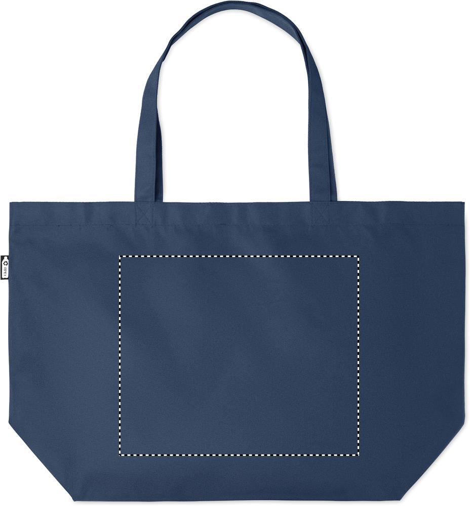 Large shopping bag or beach bag in 600D RPET with long handles and bottom gusset.