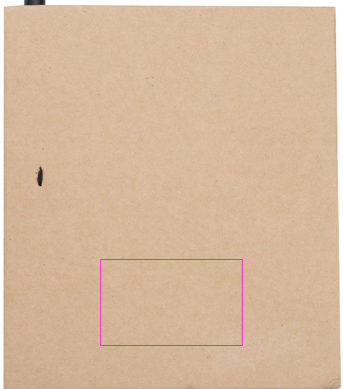 Eco-looking notepad with 200 pages, yellow sticky notes (25 sheets), five differently colored marking strips (25 strips in each color) and a ballpen. We print your logo on the cover.