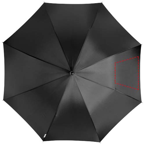 Exclusive design umbrella with automatic open function. Metal shaft and ribs. Special design handle to easily hang the umbrella on the table. Rubbercoated crook handle with aluminium detail. Matching colour pouch.