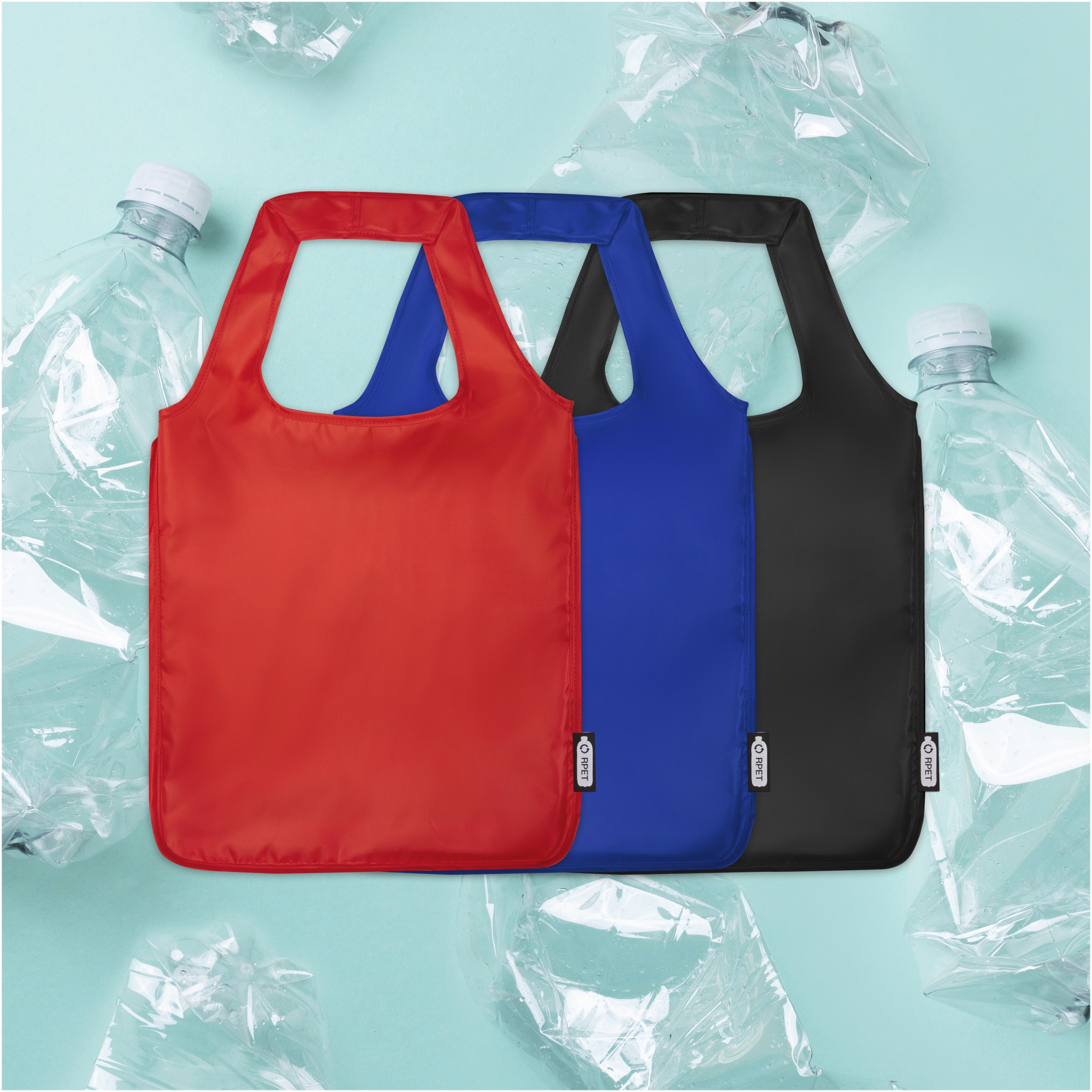 The large Ash recycled PET tote bag makes a great alternative to plastic bags. The bag has a weight resistance up to 10 kg, and features a large open main compartment and foldable design thanks to the simple elastic loop at the opening. With the 30 cm long handles the bag is easy to carry over the shoulder.
