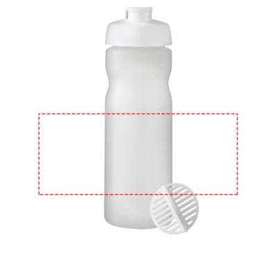 Single-wall sport bottle with shaker ball for the smooth mixing of protein shakes. Features a spill-proof lid with flip closure. Volume capacity is 650 ml. Made in the UK. BPA-free. EN12875-1 compliant and dishwasher safe.