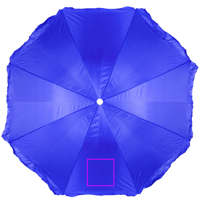 Sunshine is great - but you need to protect yourself from it. Shade yourself with our high quality beach umbrella. The white-lacquered metal bar is separate and highly adjustable, the material is made of polyester and the inner spokes are made of white-lacquered metal matching the border. The sun umbrella is packed in a transparent carrying bag. We will put your logo on one of the panels.