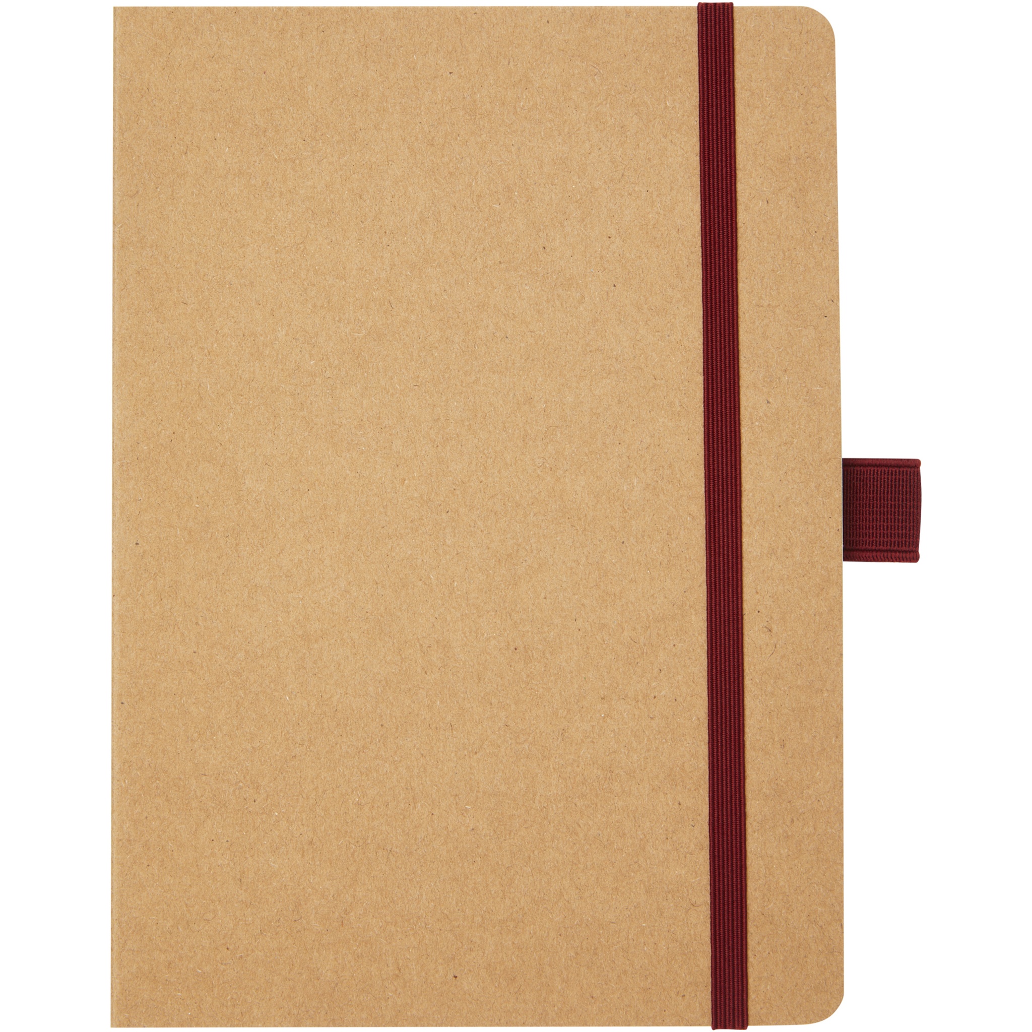 Recycled lined paper (70 g/m²) 80-sheets notebook featuring rounded corners, coloured elastic band, and a pen loop that matches the 107384 pen colours.