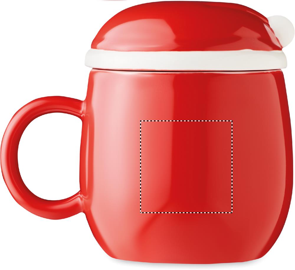 Ceramic mug with Santa Claus decoration and lid. Capacity: 370 ml.