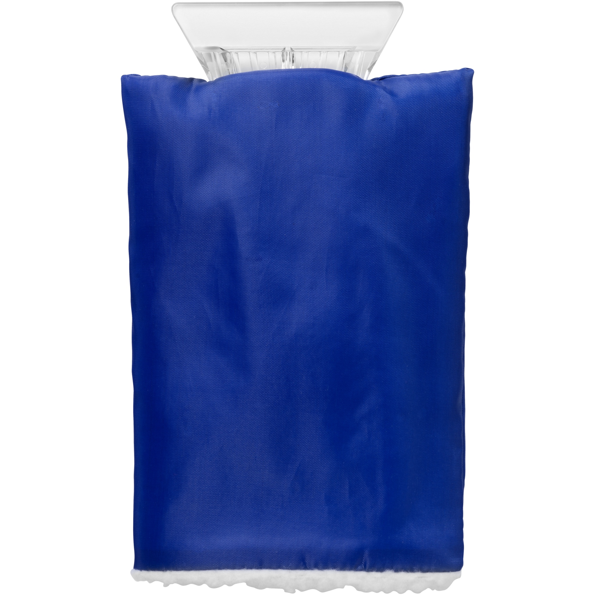 Ice scraper with a protective polyester glove with extra inside padding.