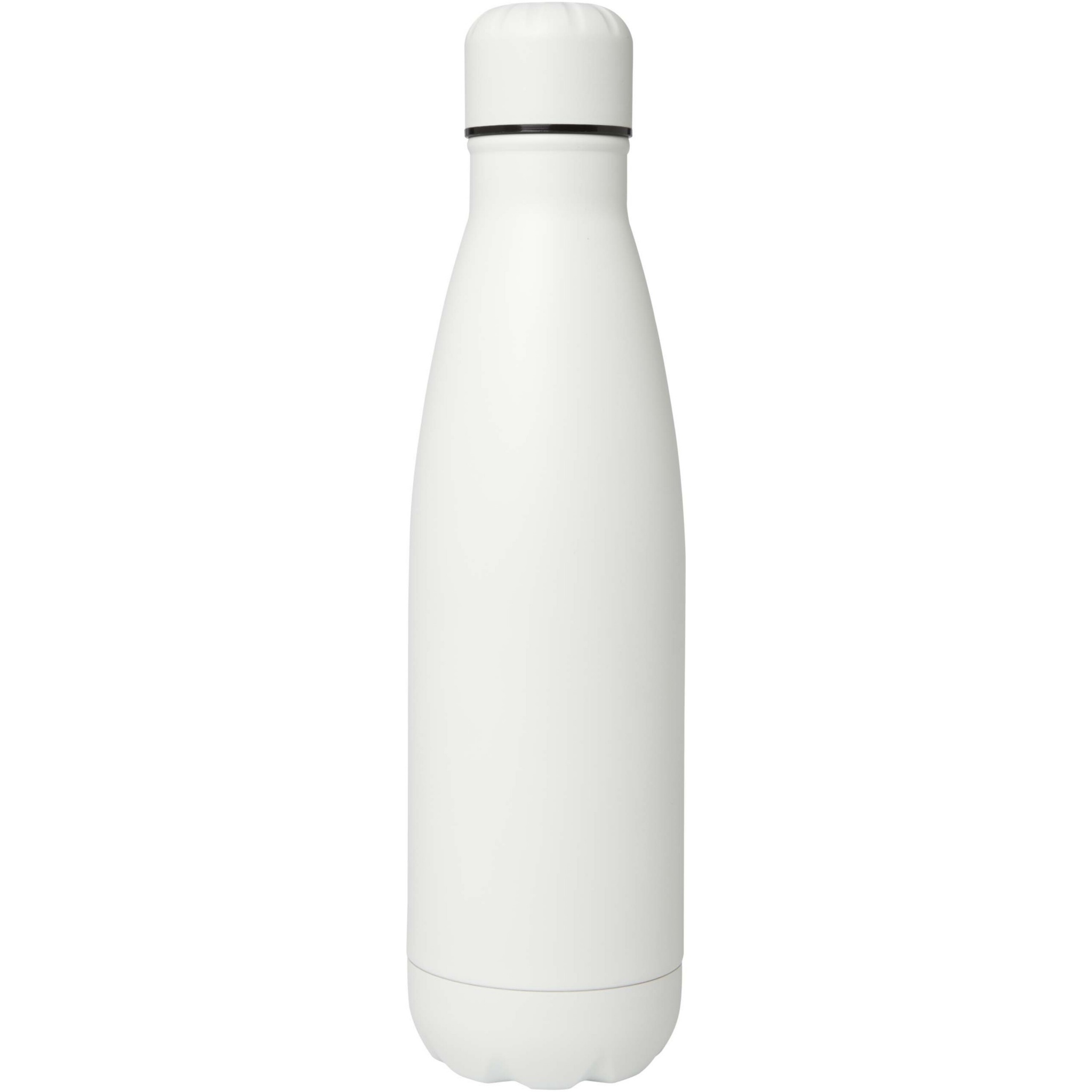 Vacuum insulated stainless steel bottle with an iconic design. The insulated 18/8 stainless steel keeps drinks hot or cold for several hours. Tested and approved under German Food Safe Legislation (LFGB), and tested for phthalates content according to REACH regulations. Featuring a base that fits in most cup holders, this sleek looking water bottle is a perfect promotional item. Volume capacity is 500 ml. Presented in a recycled cardboard gift box.