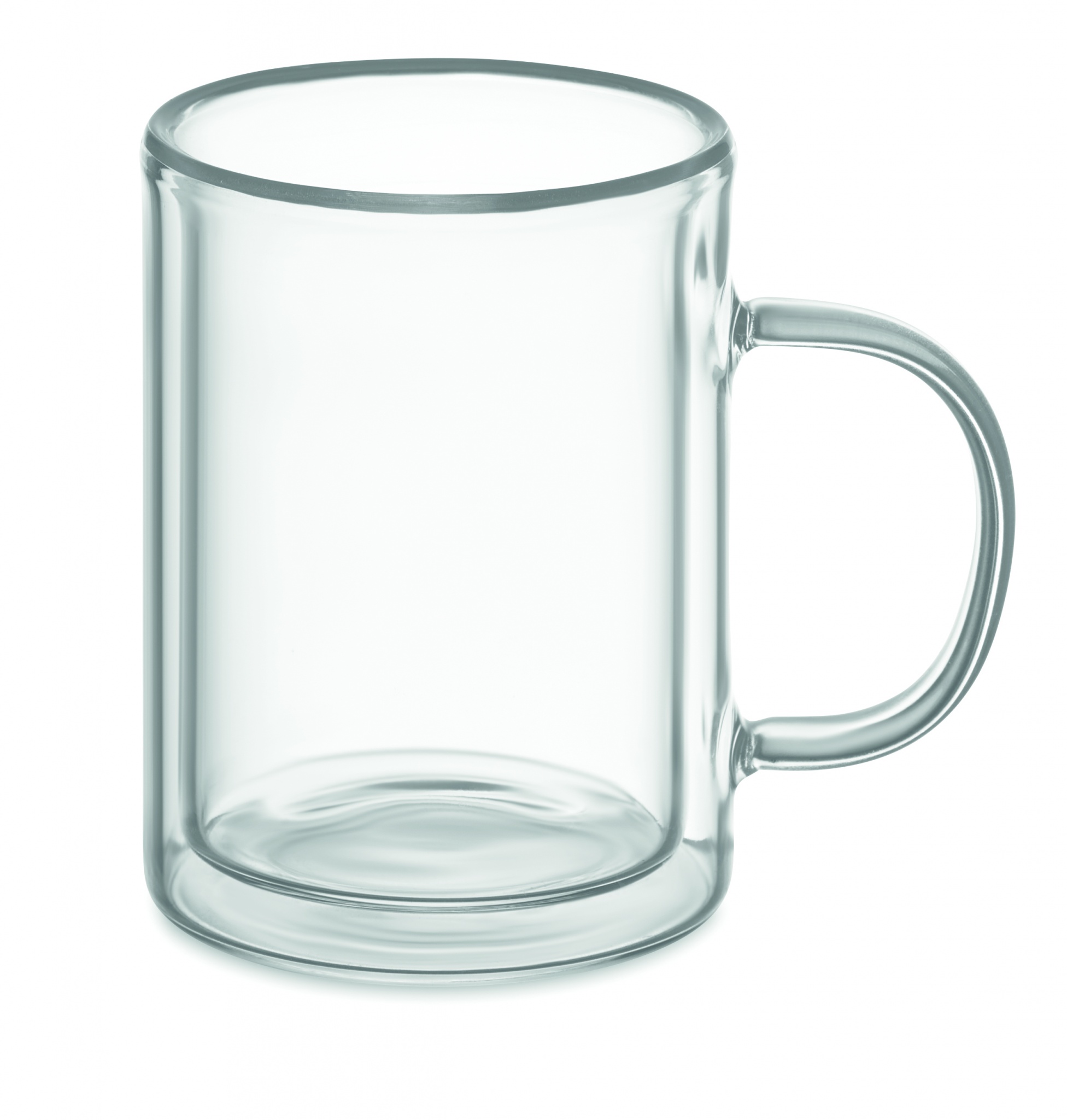 Double wall glass mug of 225 ml capacity with special coating for sublimation.