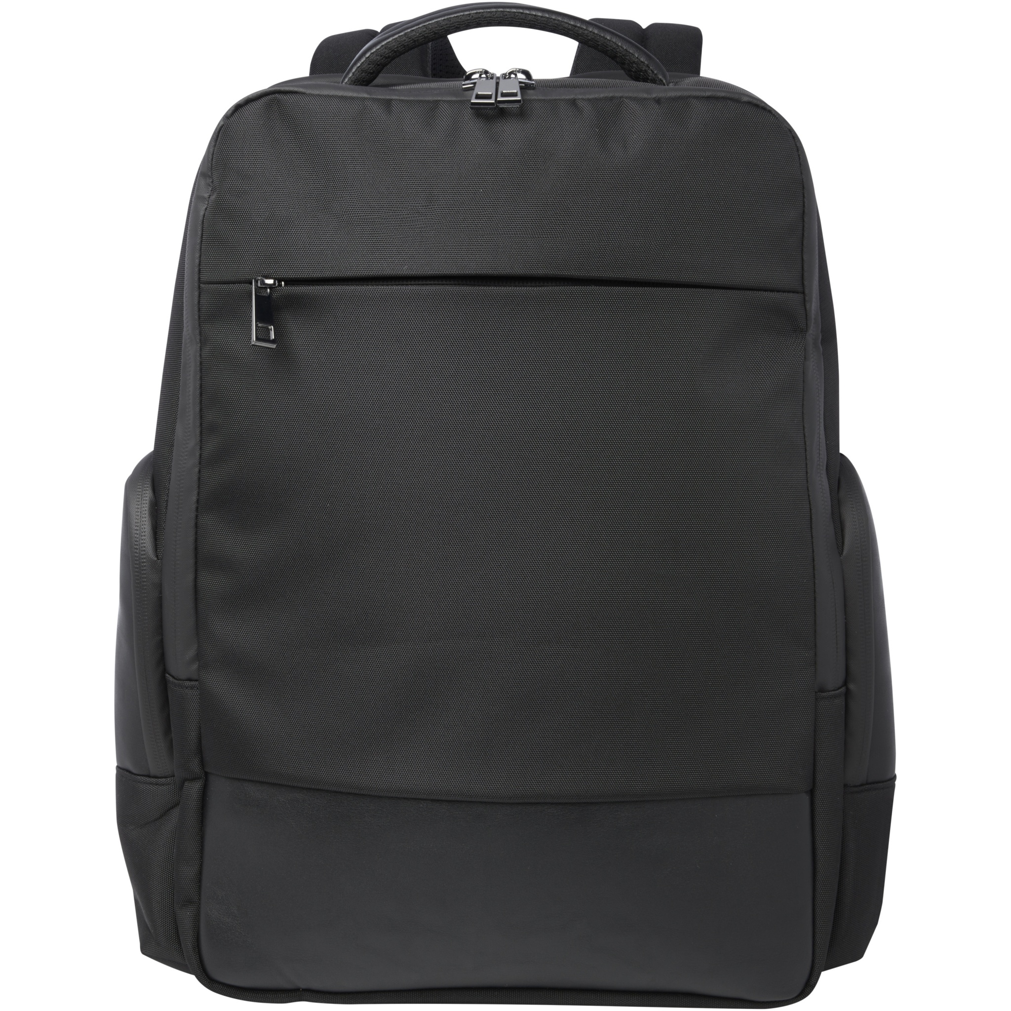 The sleek, large and sturdy GRS certified Expedition Pro laptop backpack is a perfect companion for professionals on-the-go. It is made from water repellent 900D RPET, coupled with premium PU elements and RPET lining. It features a dedicated 15.6" laptop compartment, a tablet sleeve, a spacious main compartment with integrated leak-proof pocket for toiletries, multiple organisational and side pockets, a zipped front pocket and a hidden pocket right beneath the luggage strap on the back. Constructed with padded and adjustable shoulder straps, an integrated card sleeve pocket, a sunglasses loop, moulded air mesh backing as well as a padded handle, ensuring maximum carrying comfort and convenience. Volume capacity: 25 litres. PVC free.