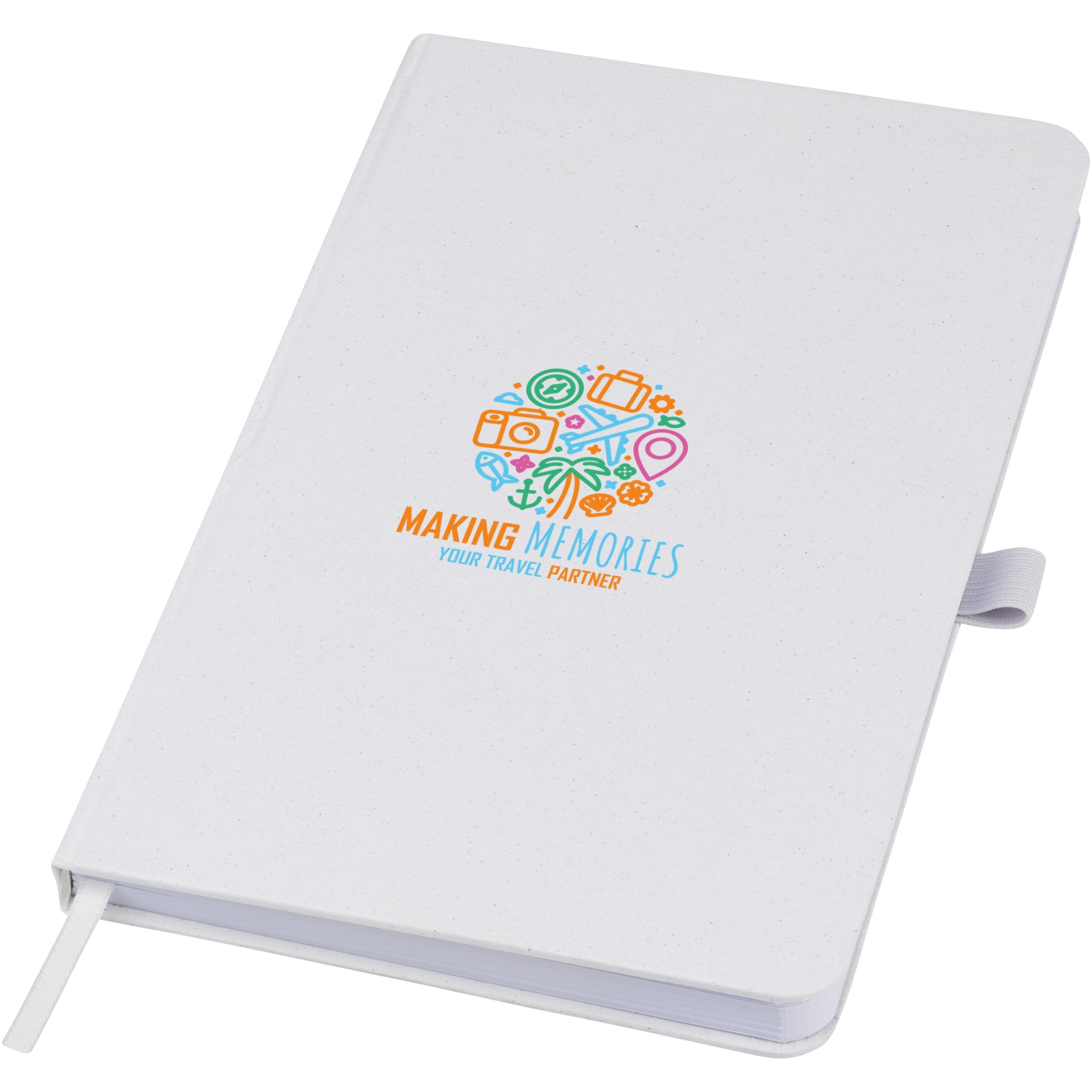 Lightweight hard cover notebook for everyday notetaking with a cover made from responsible sourced materials. The brown cover contains residue of coffee, the green cover includes residue of olives, and the white from corn. Features 80 sheets (70 g/m²) recycled white lined paper.