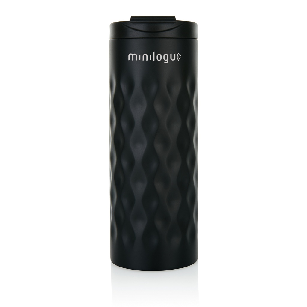 Stainless steel double wall tumbler, with a trendy geometric cut design. Capacity 350 ml.