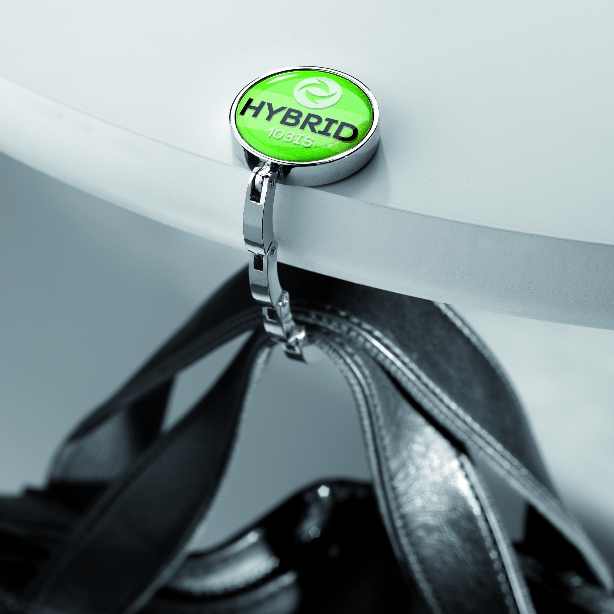 Elegant handbag holder with a segmented foldable hook for perfect adjustment.