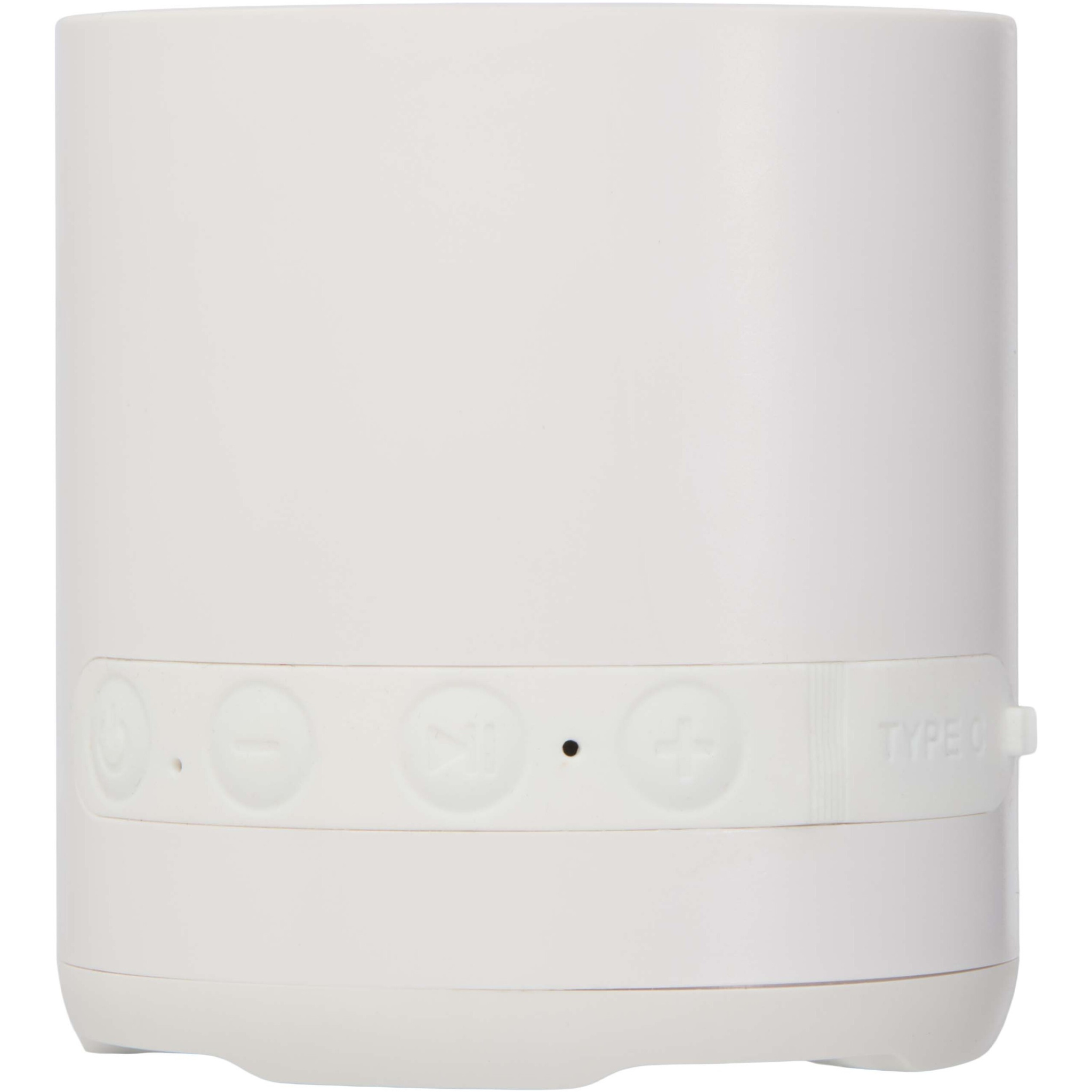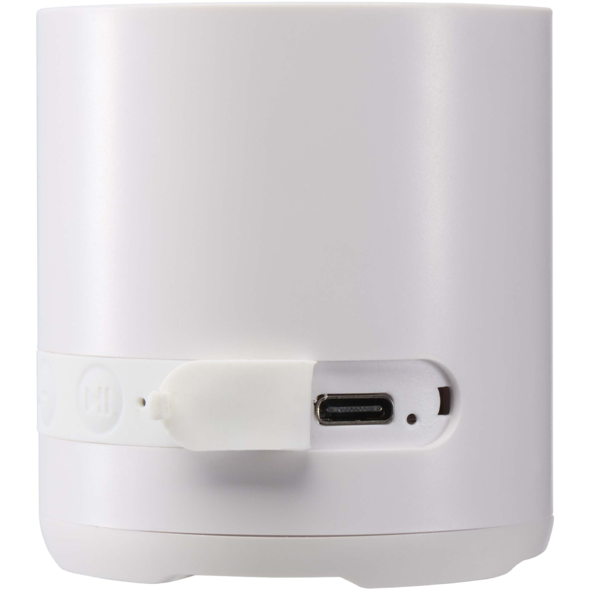 The Hunor 3W wireless Bluetooth® speaker is made from recycled plastic, and features a Type-C charging port, volume controls, a Play/Pause/Call button, and a built-in microphone. Thanks to the TWS (True Wireless Stereo) functionality, you can pair two speakers for a stereo sound experience.