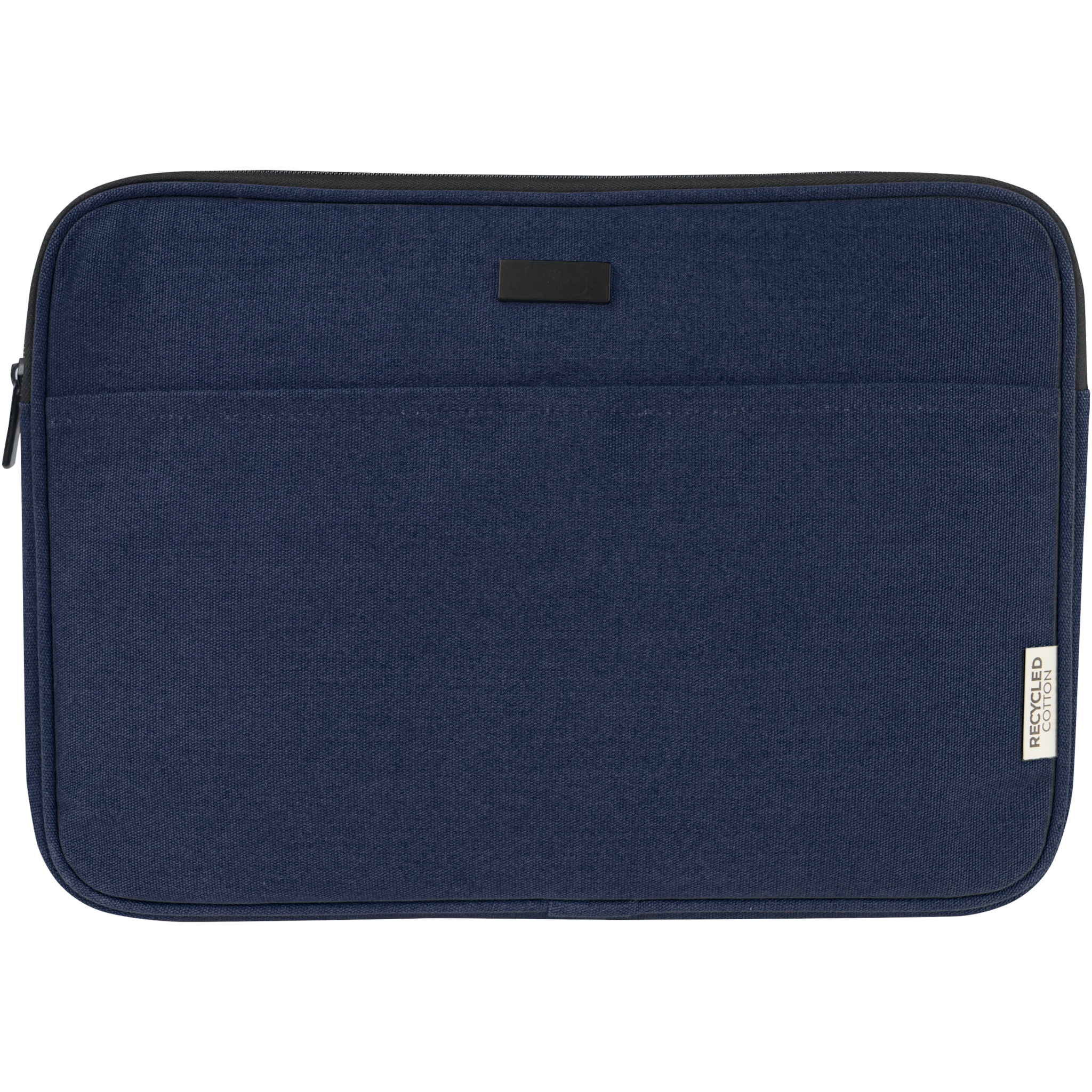 Composed with highly durable and sustainable materials, GRS recycled canvas and GRS RPET lining, the Joey 14" laptop sleeve features a protected laptop compartment, and an open front pocket with hook & loop closure. The decorative metal plate can make a logo shine through its subtle and matt finish.