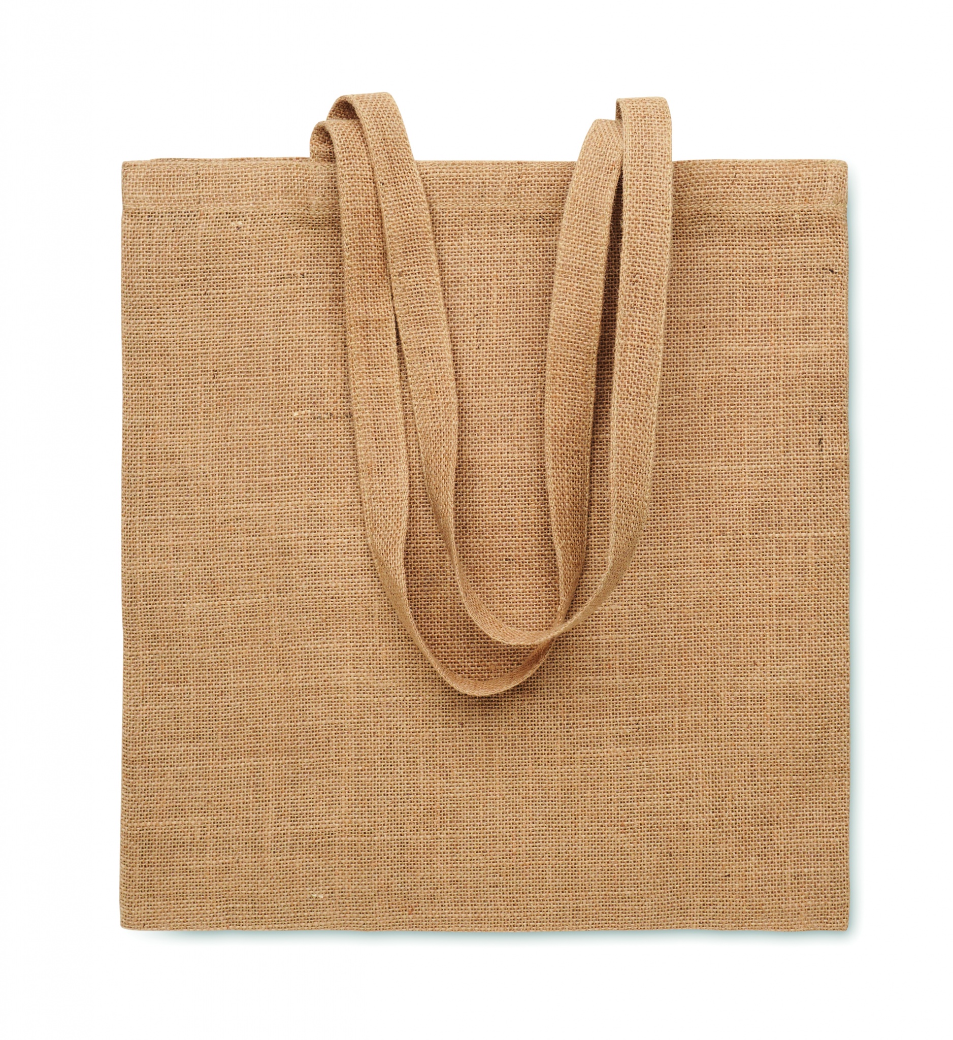 Jute shopping bag with long handles.