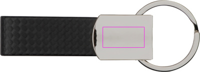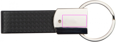 Elegant metal key ring with carbon-look strap. Your logo will be engraved on the chromed surface.