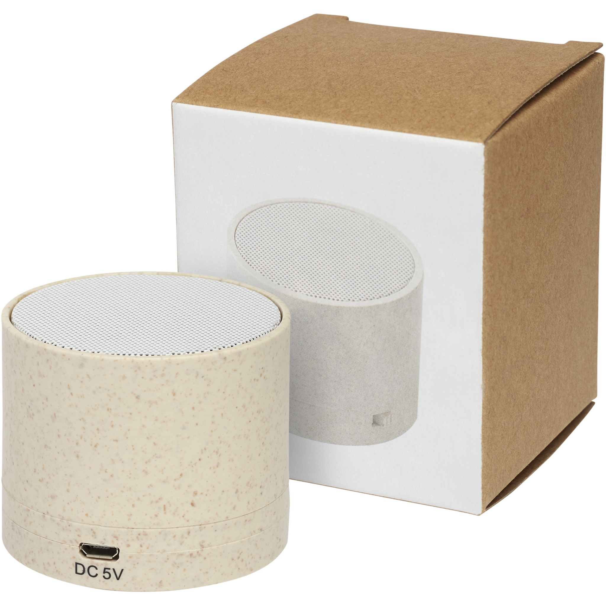 Bluetooth® speaker case made of wheat straw and plastic material mixed together, reducing the amount of plastic needed. The speaker produces crystal clear sound at over 1.5 hours playback time at maximum volume with 3W output. Bluetooth® 5.0. Packaged in a gift box and delivered with an instruction manual (both made of sustainable material). Micro-USB charging cable is included.