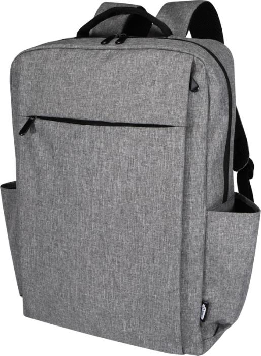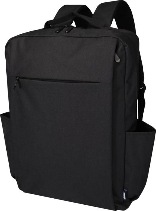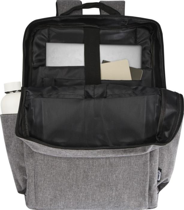 The Libra backpack is made from GRS certified recycled polyester and RPET lining, and it features a 15” laptop compartment with an additional padded tablet pocket and organisational pockets inside. There are also multiple pockets on the outside, padded and adjustable shoulder straps, and a trolley strap on the back. Resistance up to 10 kg weight.