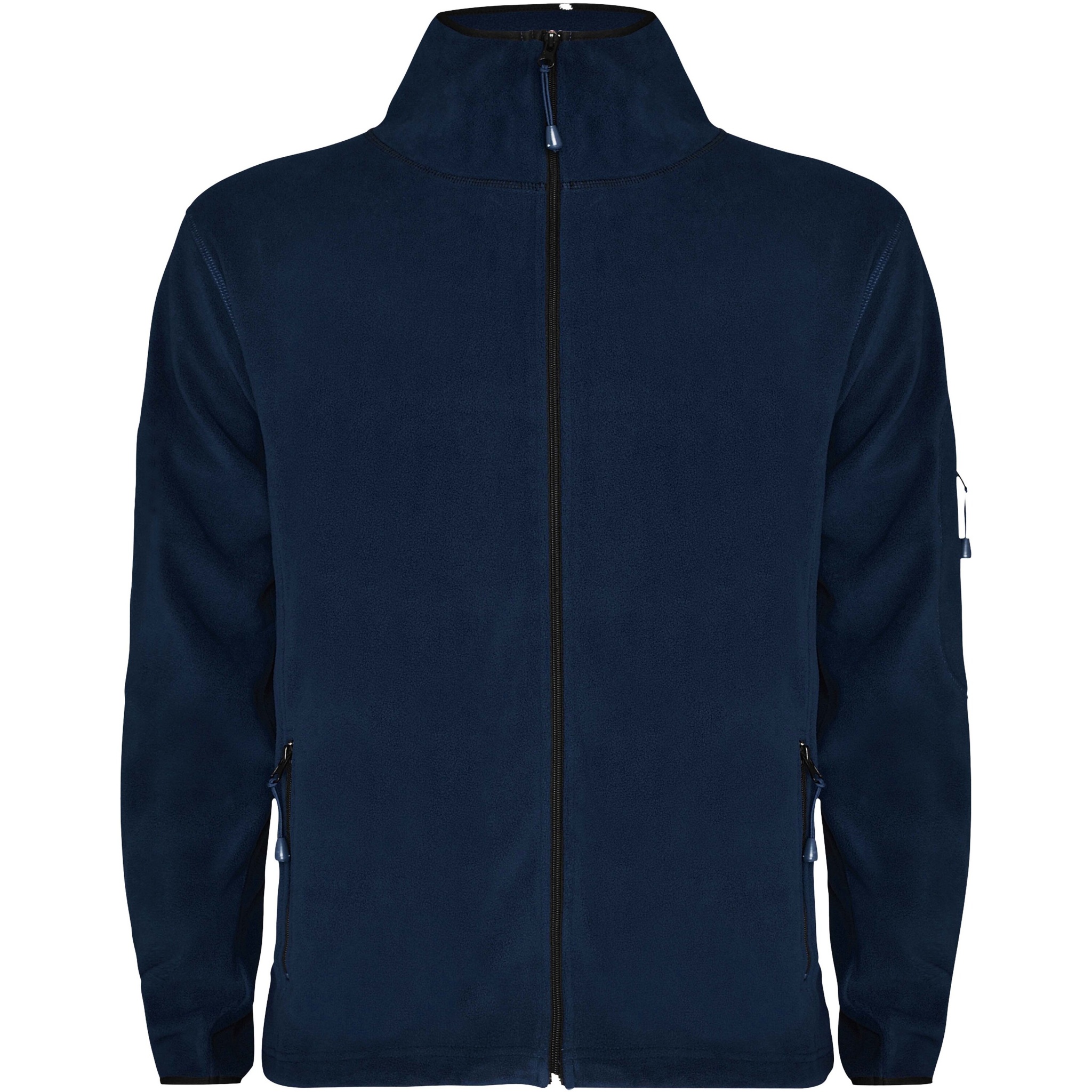 Micro fleece sweat jacket for everyday use with high collar, long sleeves and contrasting rib. Pocket with contrasting zip on left sleeve and front contrasting zip. Seams on sides and chest. Elbow pads in same fabric.