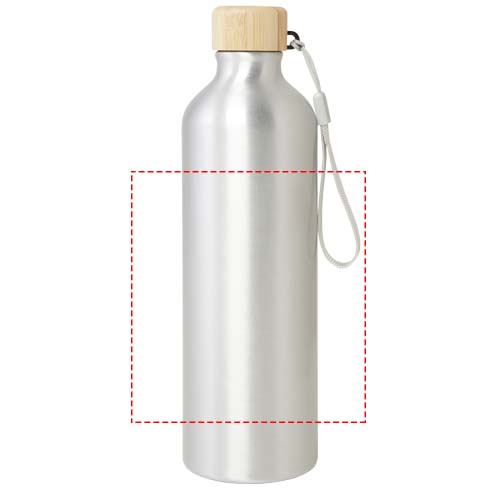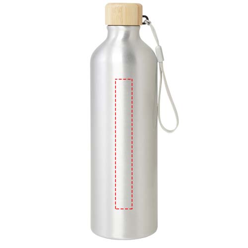 RCS certified recycled aluminium water bottle with a stylish bamboo lid. This lightweight, single-walled bottle comes with a strap for easy carrying. The bamboo is from sustainable, environmentally and socially responsible sources. Capacity is 770 ml. Hand wash only.