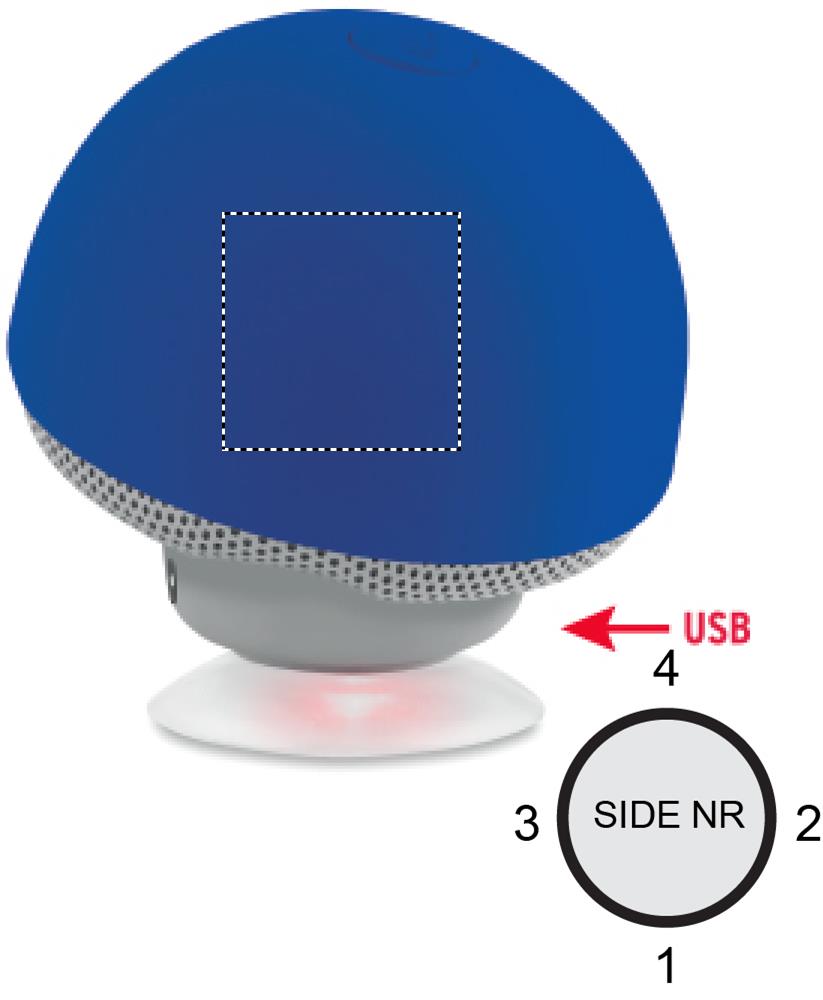 Mushroom shaped 5.0 wireless speaker/phone stand in ABS with suction cup. 1 Rechargeable Lithium 180 mAh battery included. Including USB charging cable and 3,5 mm plug. Output data: 4 Ohm, 5V and 3W. Playing time aprox. 2h.