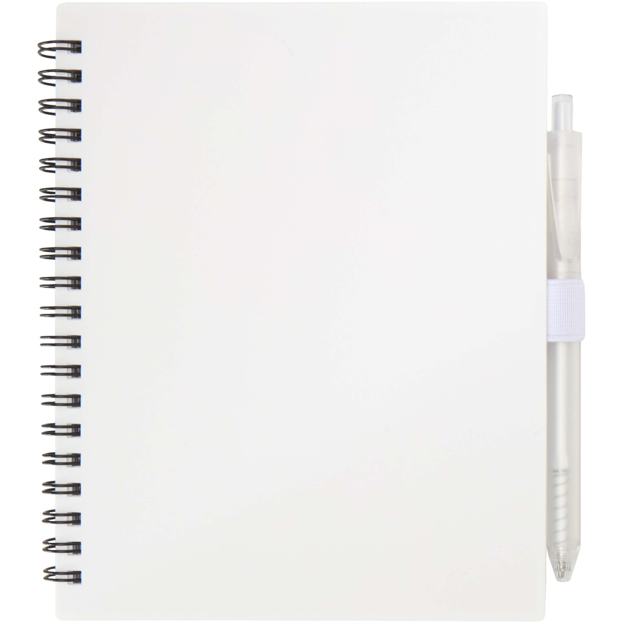 Niove recycled plastic soft cover notebook and ballpoint pen set (blue ink), White