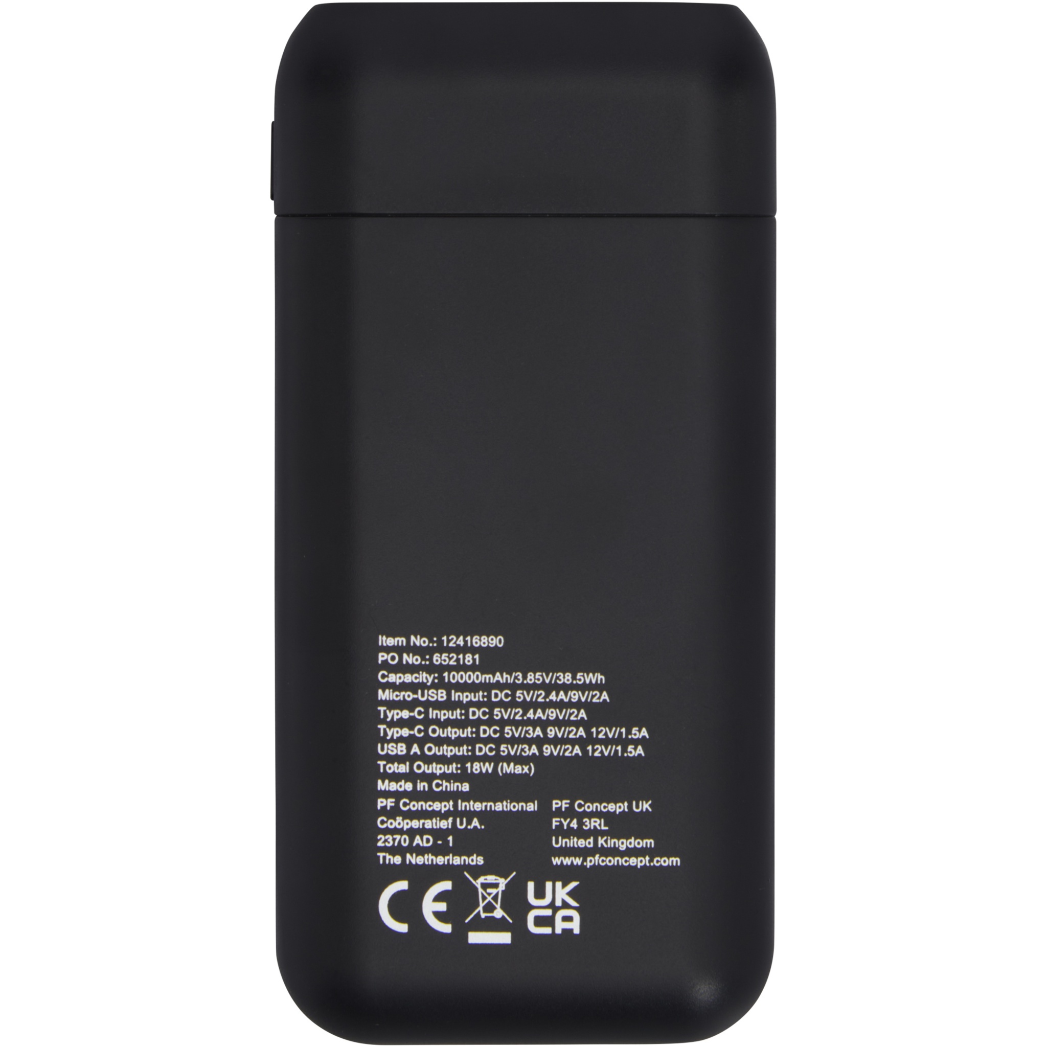 Compact power bank with a 10.000mAh high density battery that supports up to 18W quick power delivery. Micro USB input: DC5V/2.4A, 9V/2A, Type-C input: DC5V/2.4A, 9V/2A, Type-C output: DC 5V/3A, 9V/2A, 12V/1.5A, USB-A output: DC 5V/3A, 9V/2A, 12V/1.5A, Total output:18W (max). Including PVC free TPE plastic Type-C PD charging cable. Packed in an Avenue gift box.