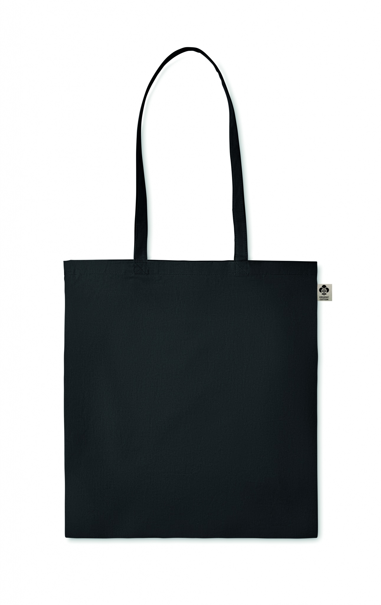 Organic cotton shopping bag with long handles. A classic tote bag design made to carry your daily groceries or other items. Carry the bag in your hands or over your shoulder with the long handles. Made from 100% natural organic cotton 140 gr/m².