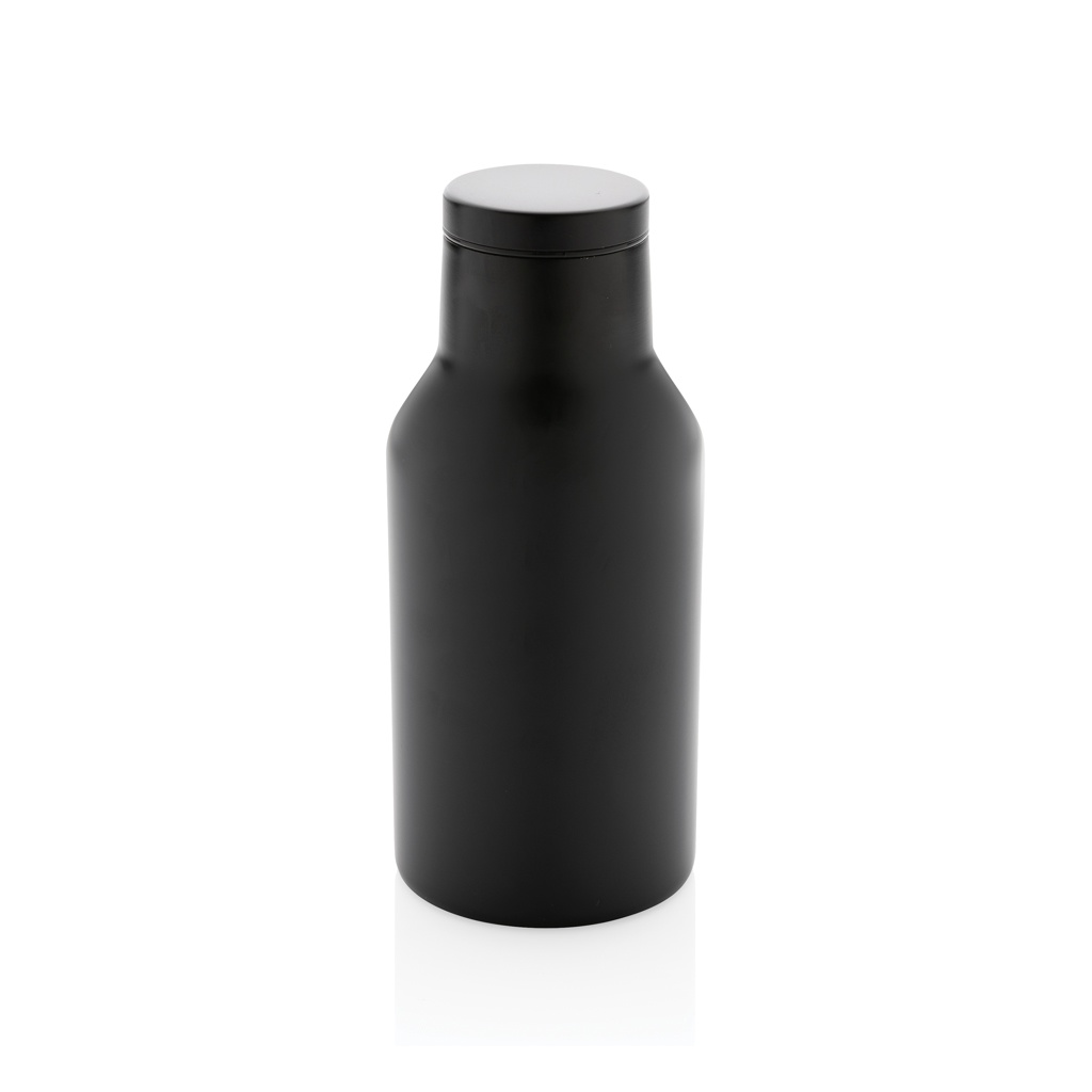 This RCS Recycled stainless steel compact bottle comes with a secure, screw-on lid that features a wide opening for easy cleaning and filling. This compact bottle is made from recycled stainless steel and features double-wall construction to keep your favourite beverages warm for up to 3 hours or cold for up to 6 hours. Made with RCS (Recycled Claim Standard) certified recycled materials. RCS certification ensures a completely certified supply chain of the recycled materials. Total recycled content: 89% based on total item weight. BPA free. Capacity 300ml. Including FSC®-certified kraft packaging.