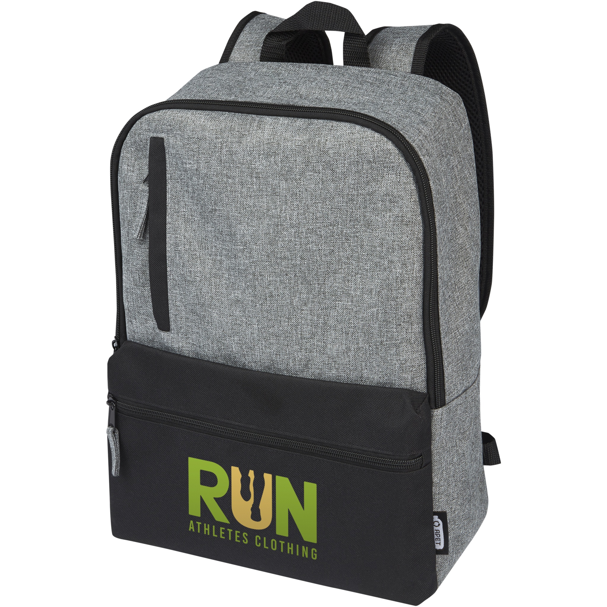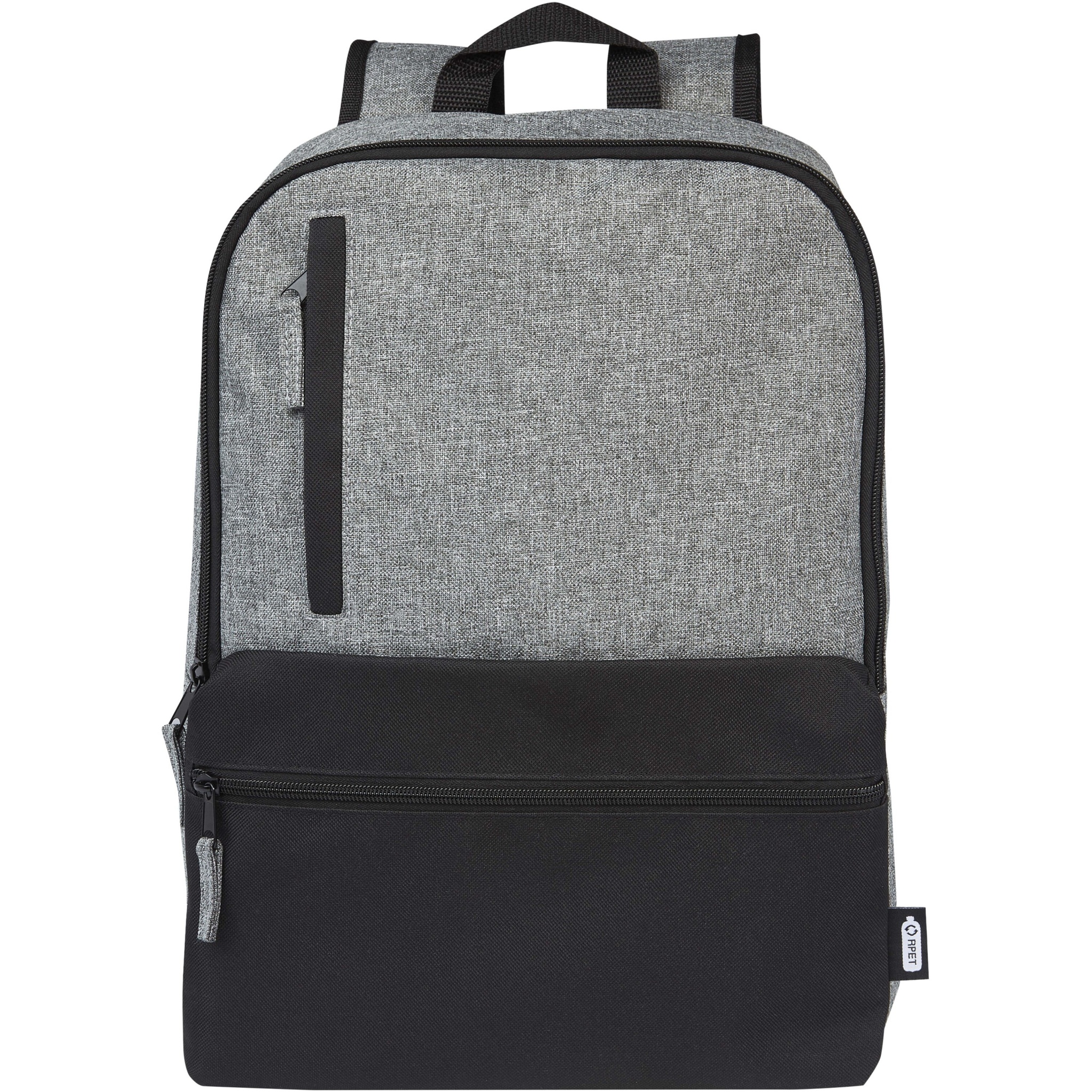 Laptop backpack made from 100% GRS recycled materials on the exterior featuring 2 zippered front pockets plus a spacious zippered main compartment containing a padded 15" laptop sleeve. The Reclaim laptop backpack provides a sustainable yet durable bag for your accessories and electronics, ideal for commuting, traveling, or regular daily use.