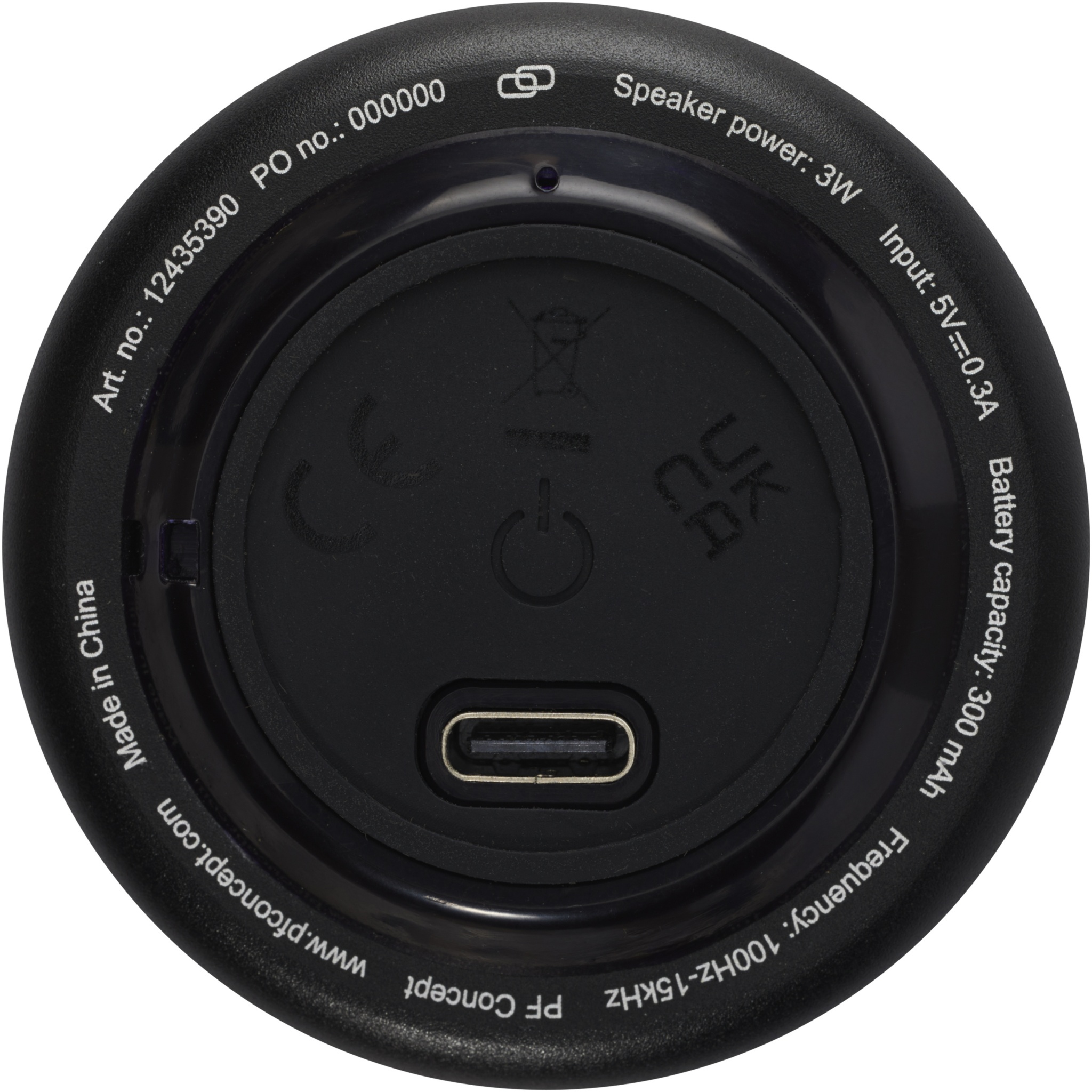 The stylish Rise RCS recycled 3W Bluetooth® mini speaker amplifies your music, podcasts etc. from any Bluetooth® enabled device. Thanks to its small size it's ideal for on-the-go. The speaker features built-in music controls and a microphone for phone calls and online meetings. Bluetooth® 5.3 with a working range of approximately 10 metres. Enjoy up to 1.5 hours of music at maximum volume thanks to its 300 mAh Li-ion battery. The charging time is 1.5 hours. Supplied with a user manual, a 30 cm USB-A to Type-C charging cable, and packed in a 100% recycled kraft paper box.