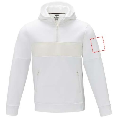 The Sayan men's half zip anorak hooded sweater – a unique combination of performance and style. The anorak design combines fashion and function seamlessly, featuring a quarter zip for versatility in layering. Made from a 350 g/m² blend of polyester and Sorona® knit. The Sorona® fiber enhances the jacket's eco-friendliness by incorporating a sustainable element without compromising on performance. The contrast fabric on the front panel, made of 280T ripstop nylon, adds to the design with its durability and texture and is the ideal location to showcase your brand. Whether you're embarking on an outdoor adventure or simply navigating your daily routine, the Sayan hooded sweater effortlessly combines fashion with function.