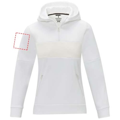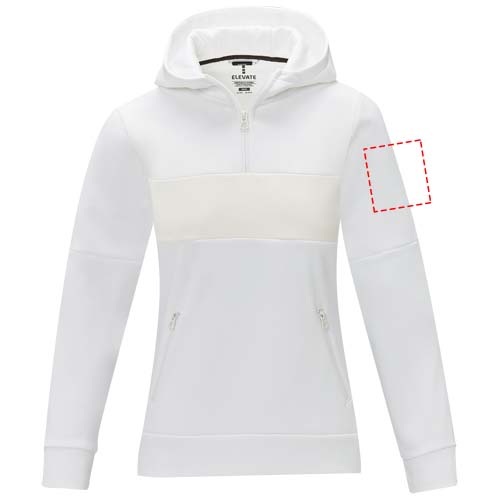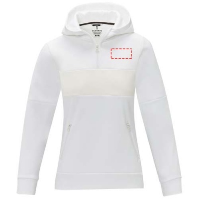 The Sayan women's half zip anorak hooded sweater – a unique combination of performance and style. The anorak design combines fashion and function seamlessly, featuring a quarter zip for versatility in layering. Made from a 350 g/m² blend of polyester and Sorona® knit. The Sorona® fiber enhances the jacket's eco-friendliness by incorporating a sustainable element without compromising on performance. The contrast fabric on the front panel, made of 280T ripstop nylon, adds to the design with its durability and texture and is the ideal location to showcase your brand. Whether you're embarking on an outdoor adventure or simply navigating your daily routine, the Sayan hooded sweater effortlessly combines fashion with function. This sweater is designed with a fitted shape for a feminine look.