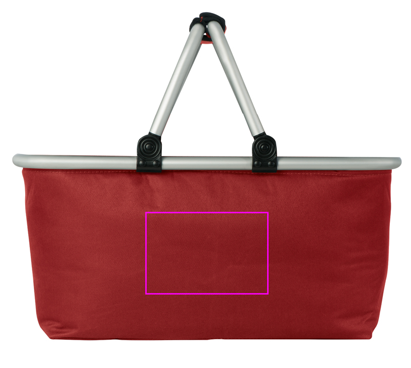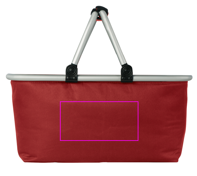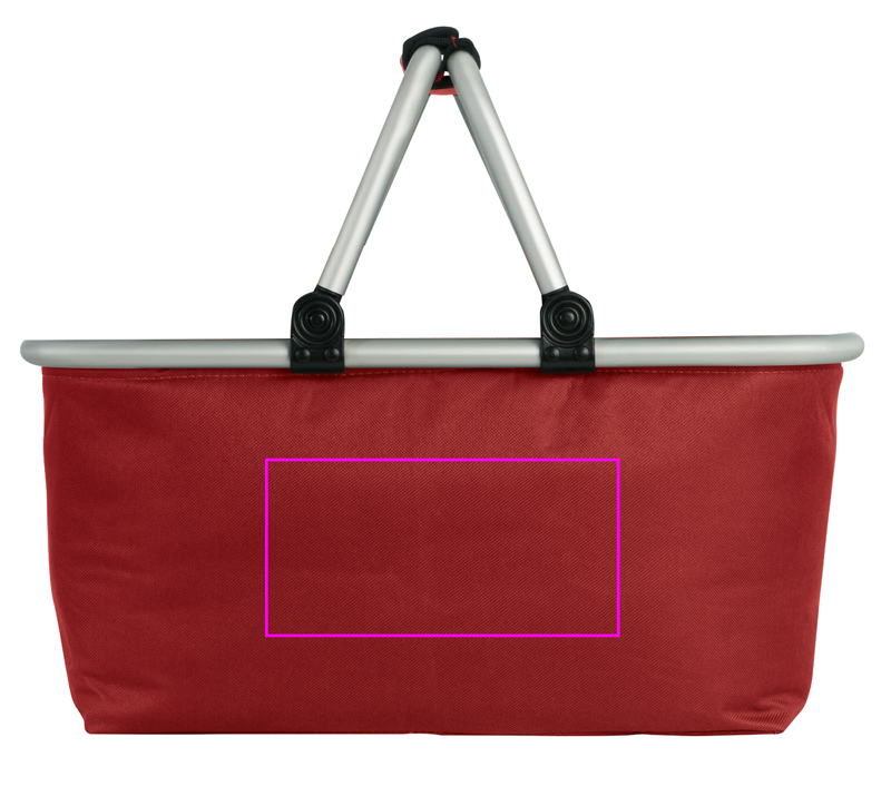Shopping basket with aluminum frame in different colors, your shopping made easy. We print your logo on one side,