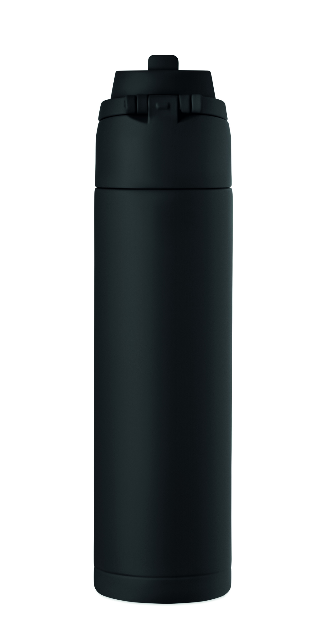 Single wall recycled stainless steel (90% recycled stainless and 10% stainless steel) bottle. Features 2-in-1 straw and sip PP lid with handle. Leak-free. Capacity: 650 ml.